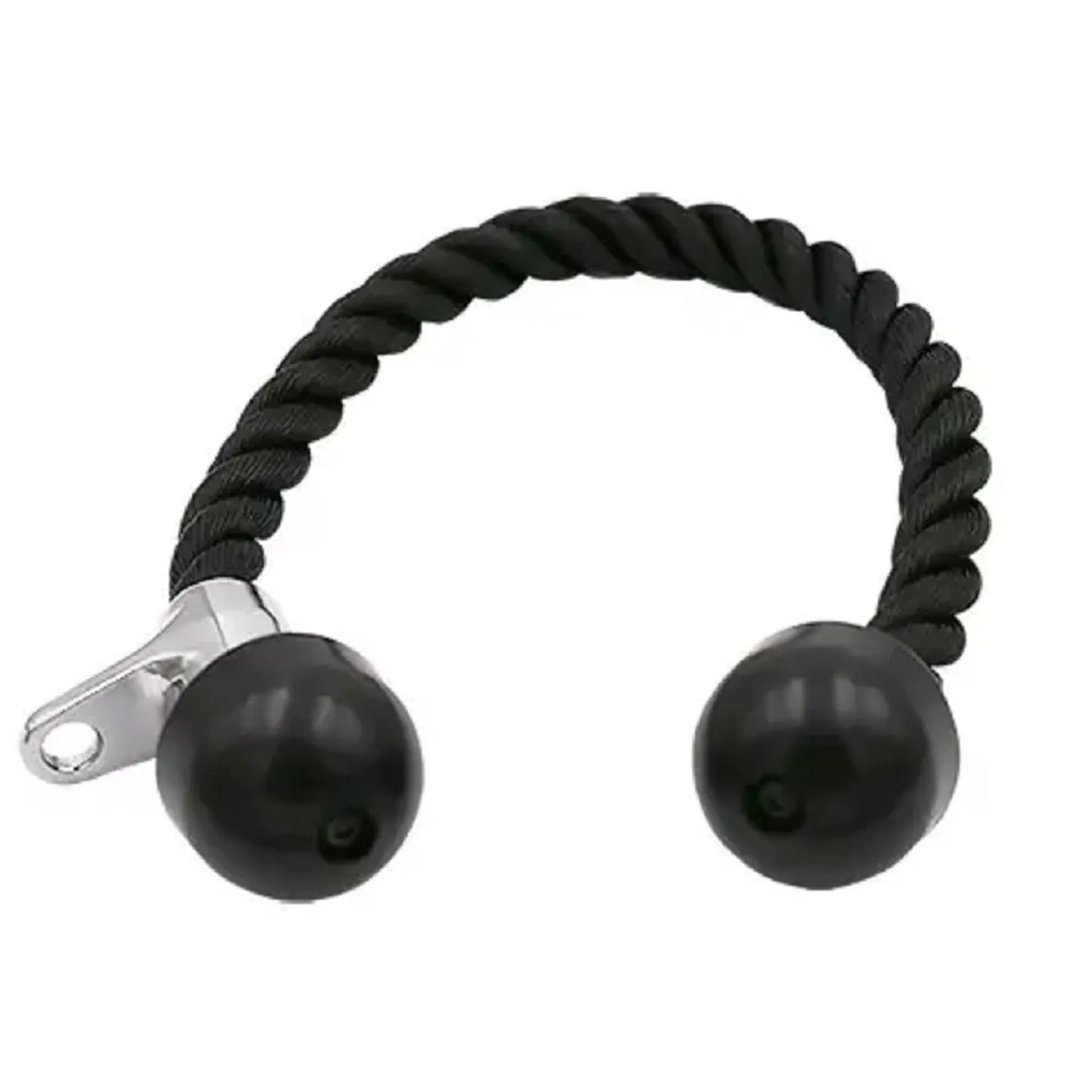 Optimiza tu entrenamiento con este agarre de cuerda para tríceps en color negro, diseñado para adaptarse fácilmente a cualquier máquina de musculación.