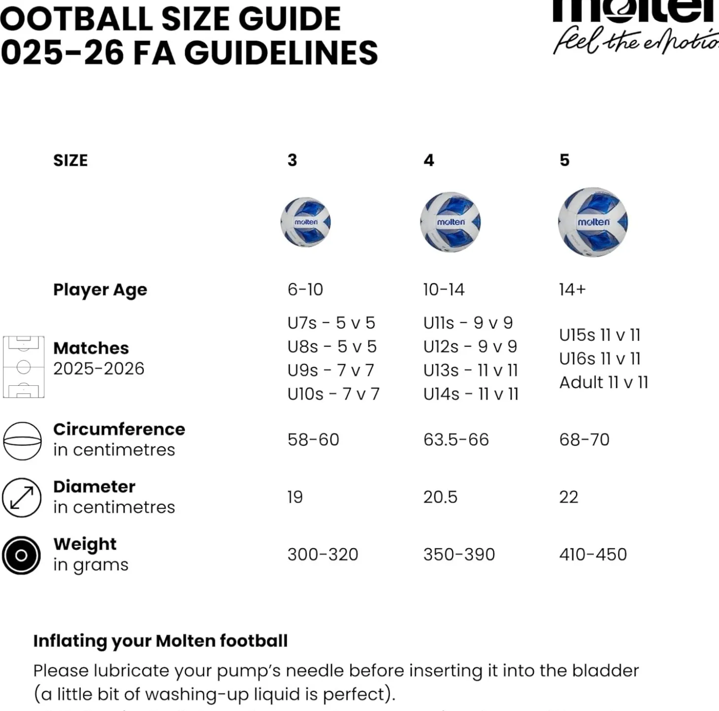 Pensado para los primeros toques y partidos de formación, el balón de fútbol Molten F3A1000 en talla 3 ofrece resistencia, control y visibilidad en cada jugada.
