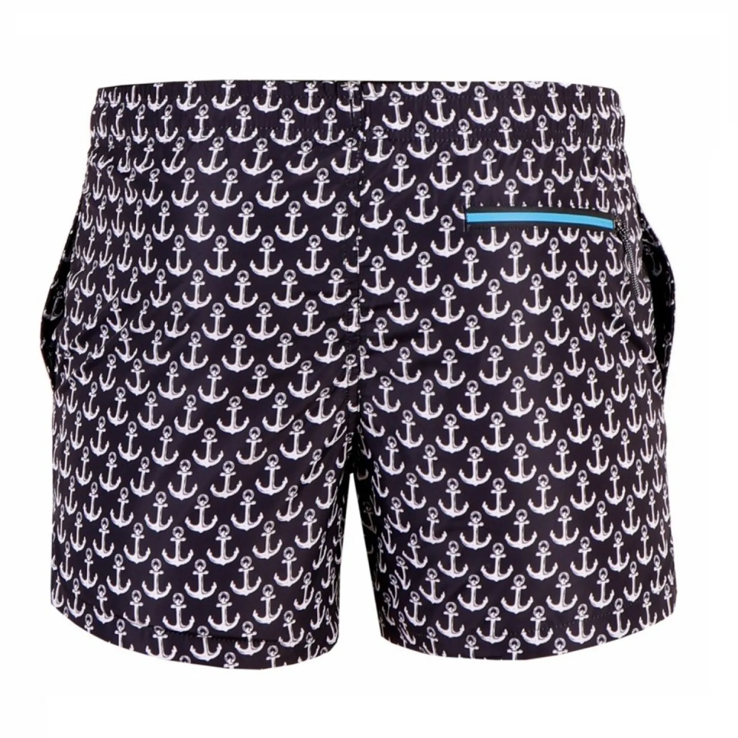 Nuevo bañador tipo bermuda de la marca Sphere Pro, el Tinny Anchor en color negro con un fondo de anclas, ideal para lucirlo en la playa o en la piscina.