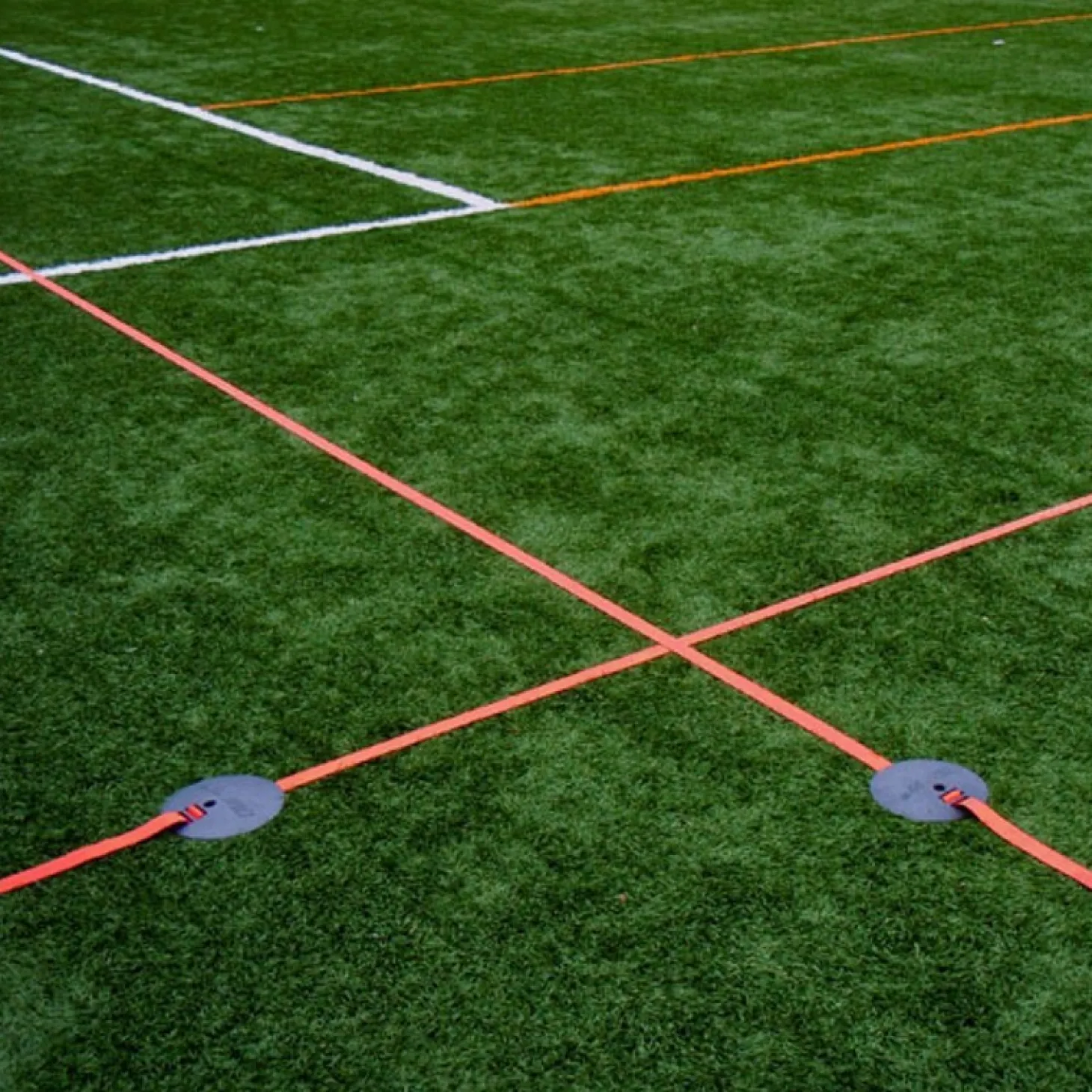 Con esta base lastrada podrás fijar las cintas delimitadoras que te permiten componer el terreno de juego.