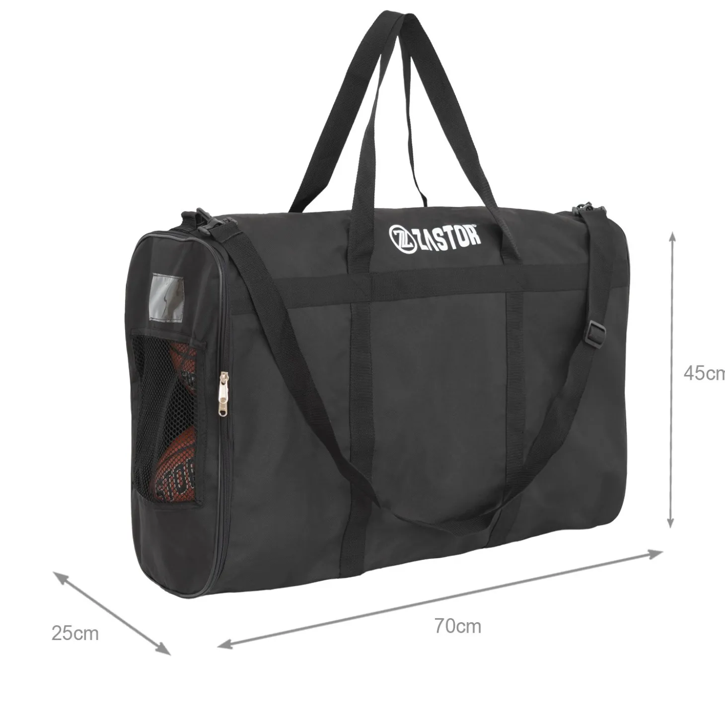 Con capacidad para hasta 6 balones y fabricada en poliéster de alta resistencia, la Velop de Zastor garantiza una durabilidad superior frente al desgaste del uso diario, tanto en entrenamientos como en competiciones. Sus medidas de 70x48x24cm permiten guardar balones de tamaño oficial sin dificultad, asegurando espacio suficiente y protección durante el transporte.