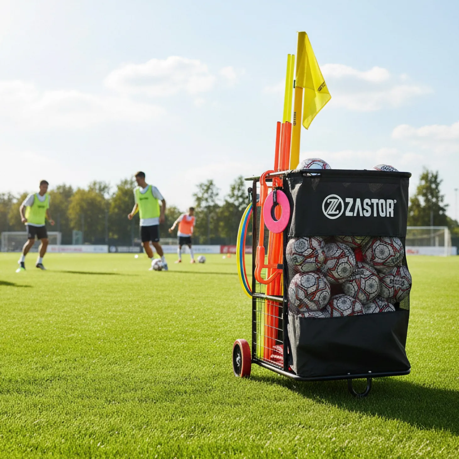 Carro de equipamiento para material de entrenamiento de Zastor, modelo Mark en color negro, ideal para transportar y almacenar material deportivo de forma práctica y segura.