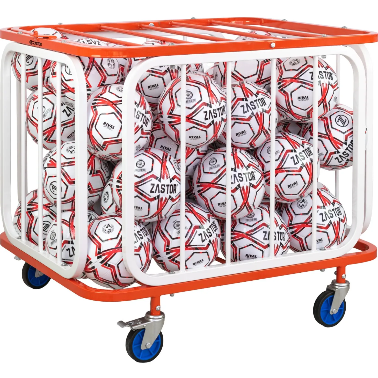 Carro portabalones de acero de la marca Zastor perfecto para transportar los balones cómodamente y no llevarlos al hombro. Posibilidad de poner un candado para cerrar el carro.