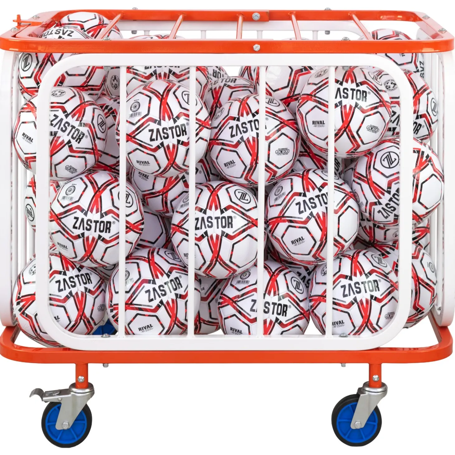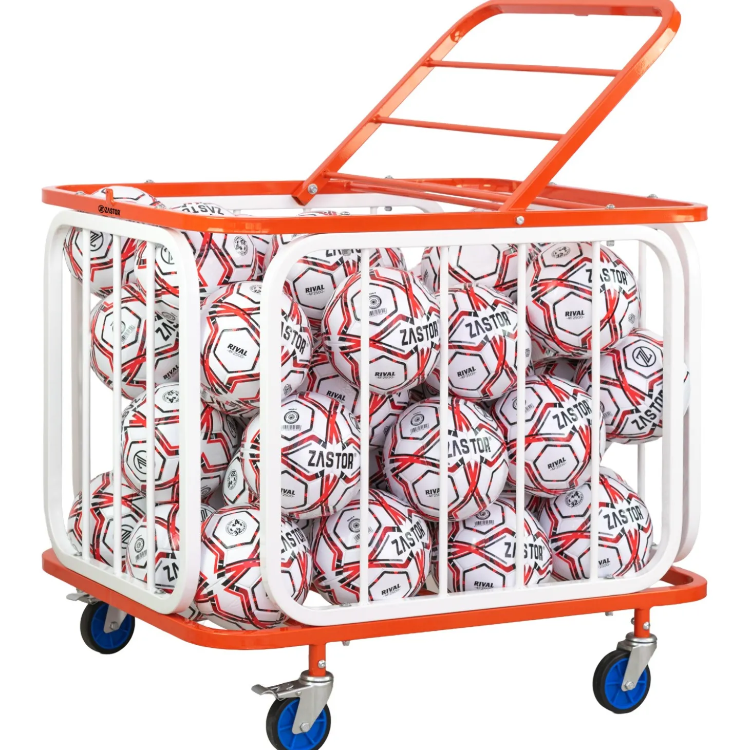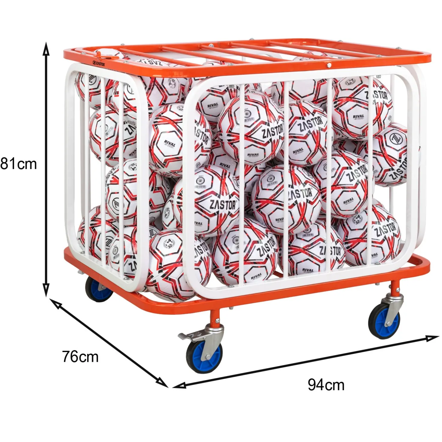 No cargues más con los balones al hombro y llévalos cómodamente gracias al carro portabalones de acero Zastor Bosca en color naranja y blanco.