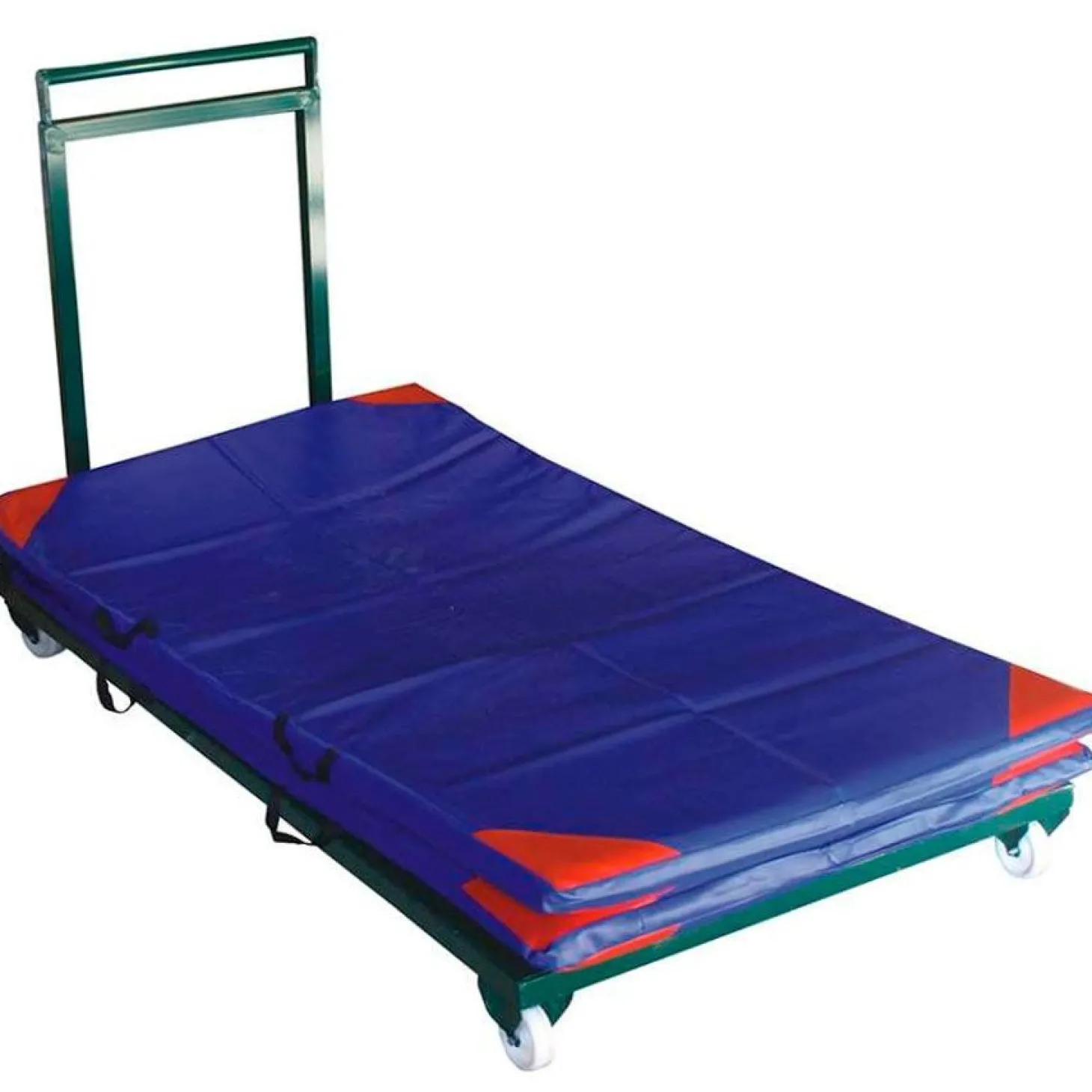 Carro para el transporte de colchonetas de tamaño 200 x 100 cm y equipada con ruedas.