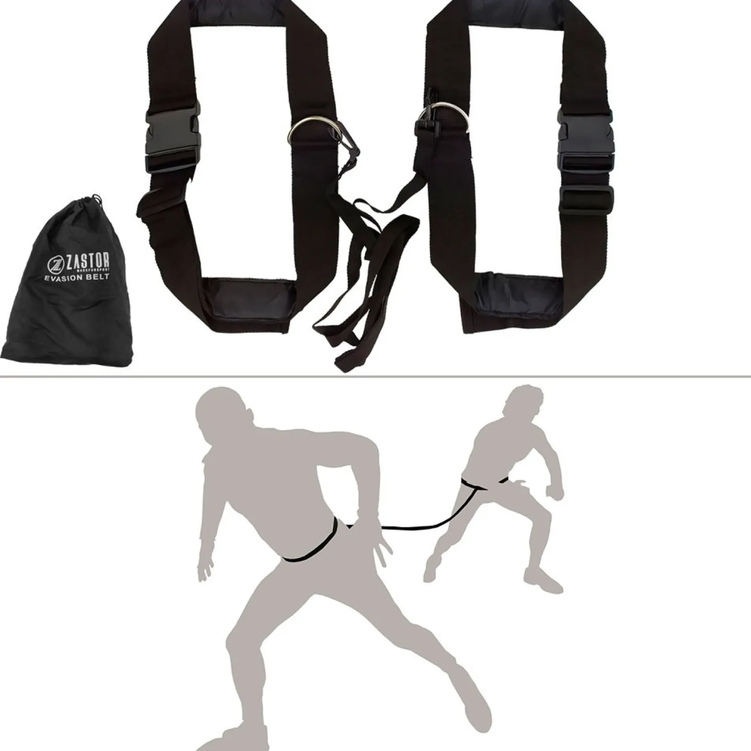 Este accesorio de entrenamiento cuenta con dos árneses de cintura ajustables que se colocan dos deportistas y que se unen entre sí a través de una cinta. Esta cinta cuenta con un sistema de liberación rápida que consiste en un agarre de velcro que se suelta con facilidad. Los ejercicos con este sistema de entrenamiento de Zastor son óptimos para potenciar la velocidad, agilidad y reacción.