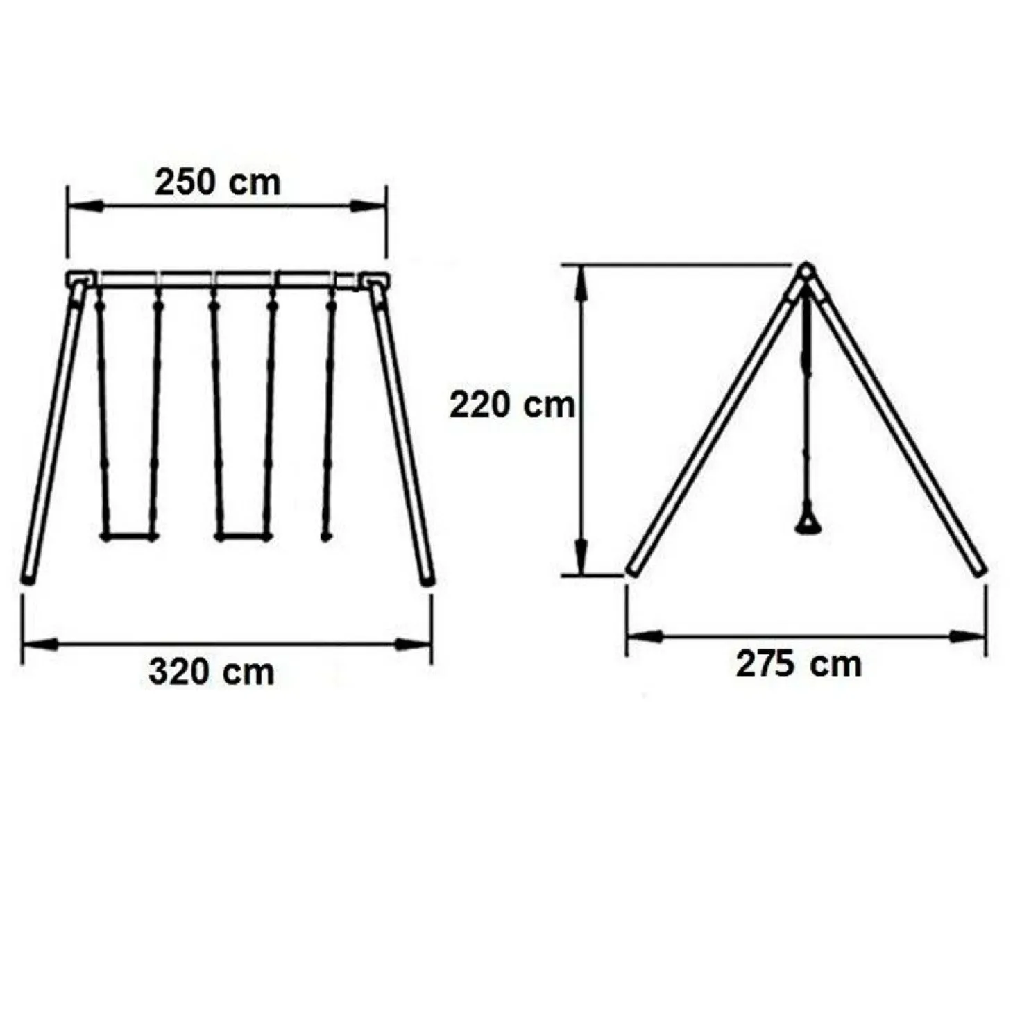 Se entrega con todas las piezas metálicas de unión, anclajes y tornillería necesarios para montar el columpio.