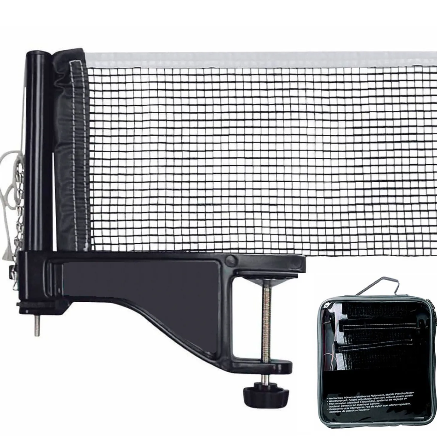 Este juego de red con soporte es el complemento ideal para tu mesa de ping pong del jardín o la terraza Sujete los soportes a la mesa y coloque la red. El juego ya puede comenzar.
