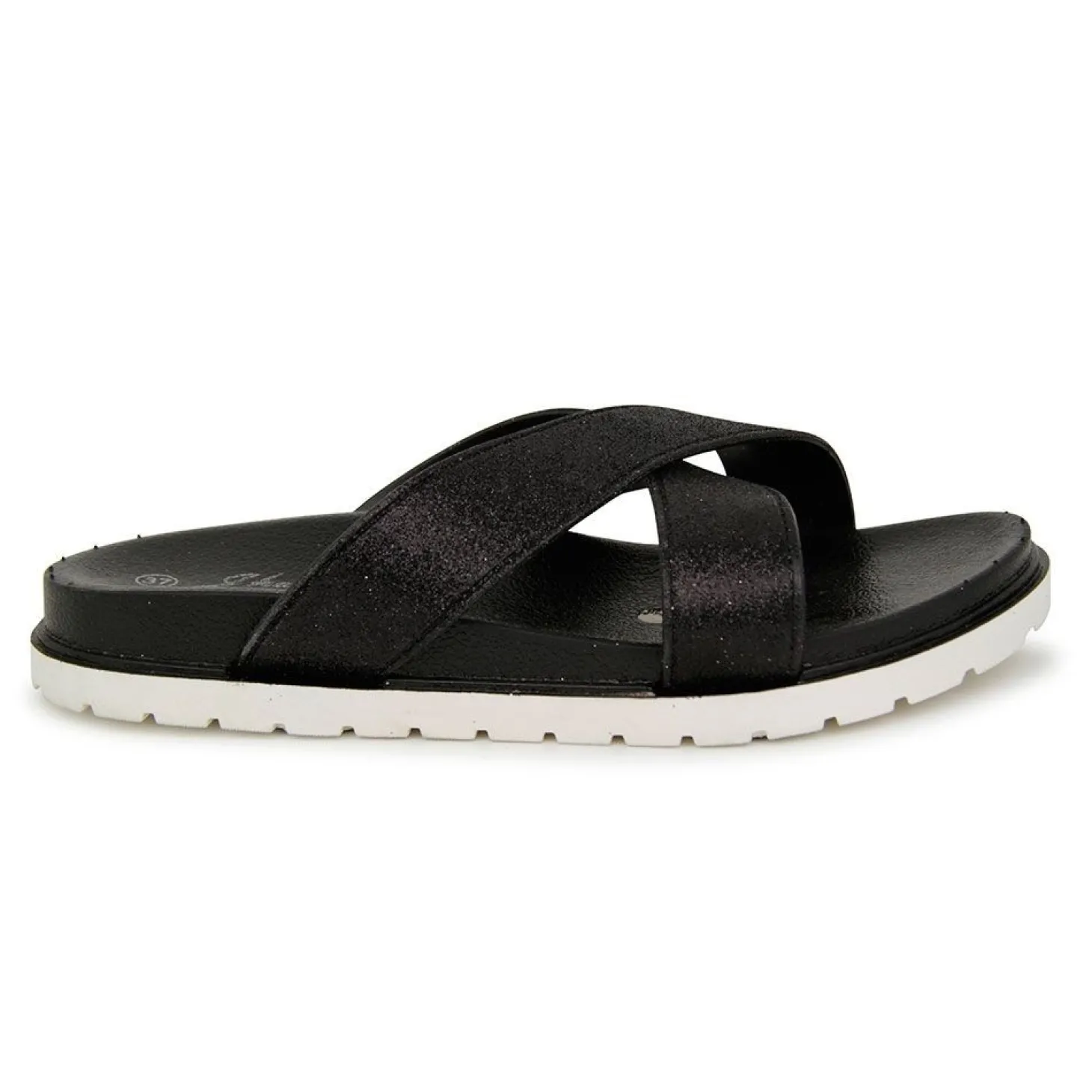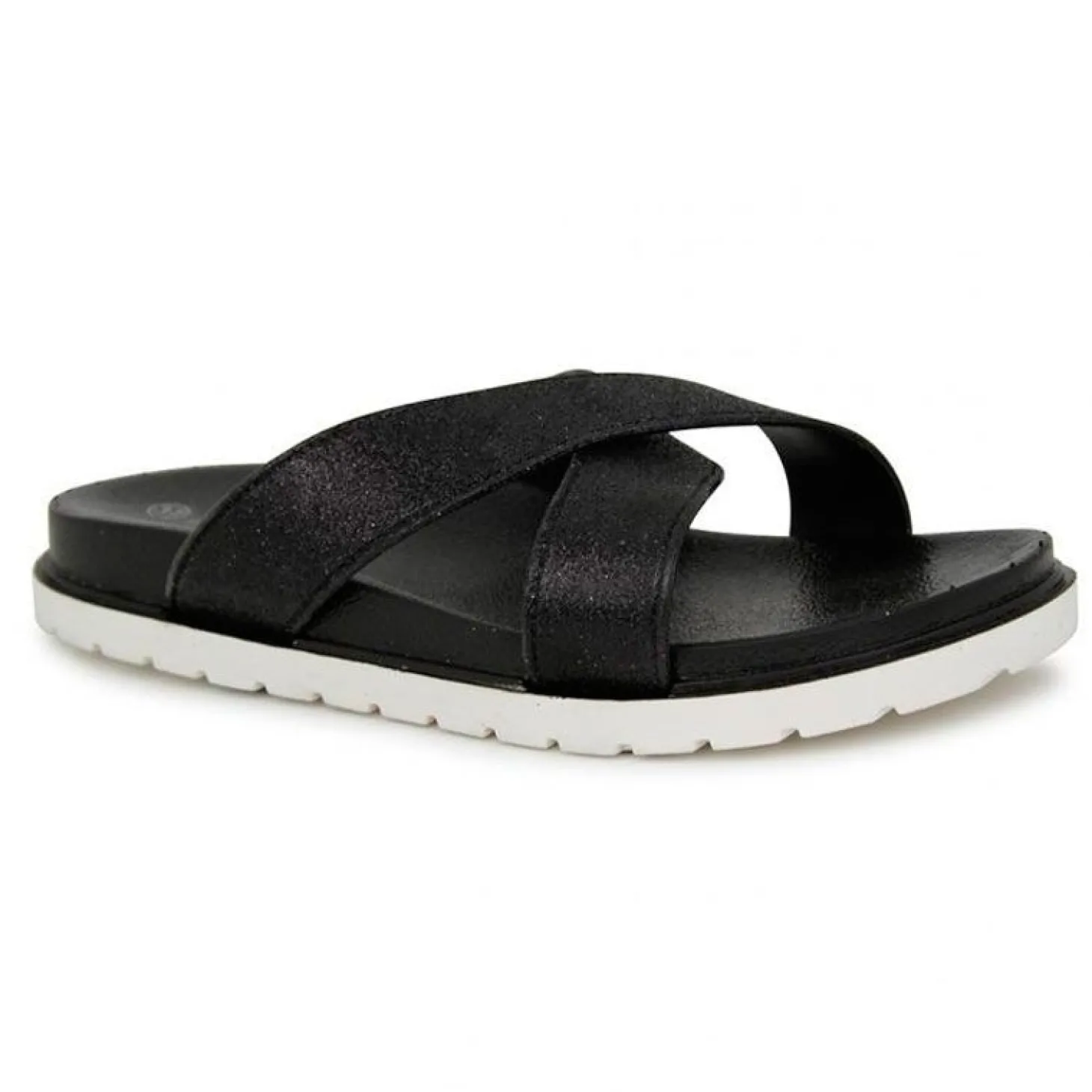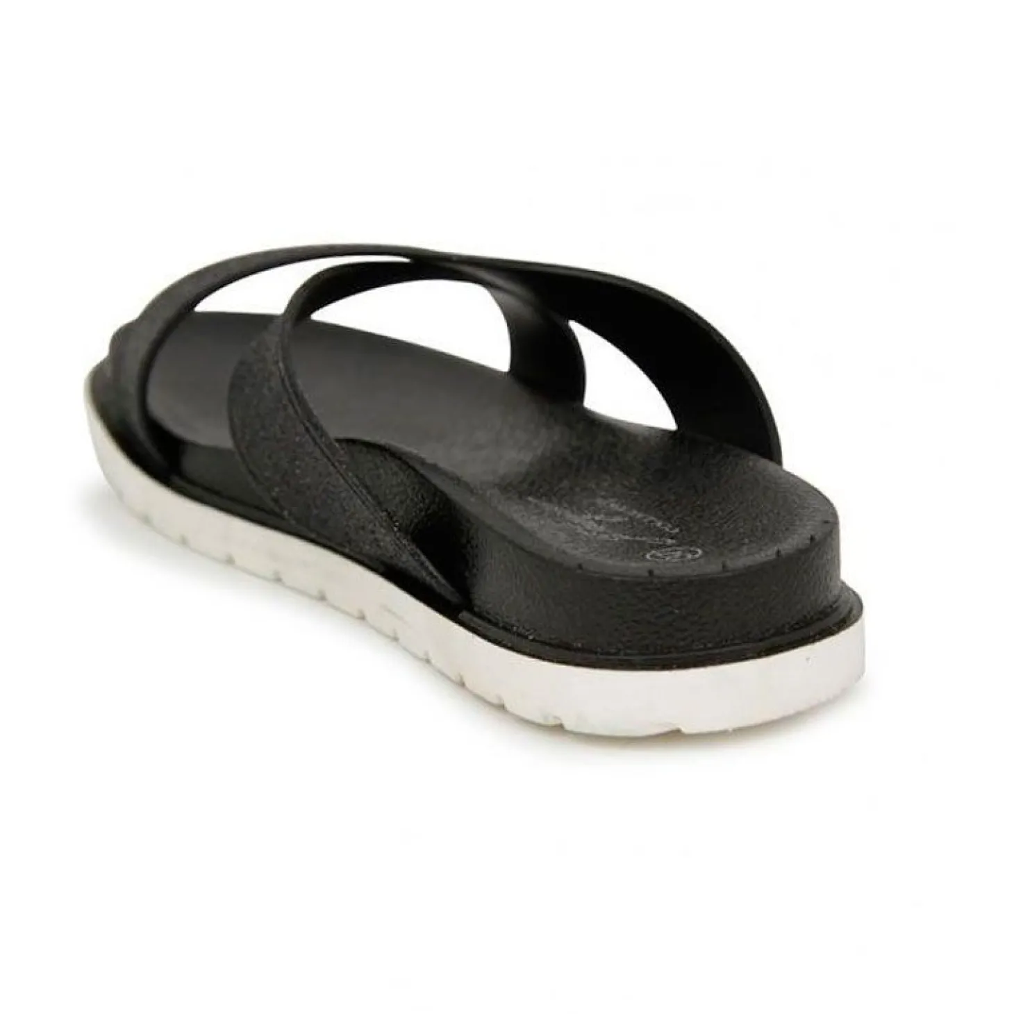 Tiene un diseño en color negro con una tiras cruzadas superiores para una mayor agarre. Cuenta con una suela de goma y una plantilla cómoda que permite recorrer los paseos marítimos.