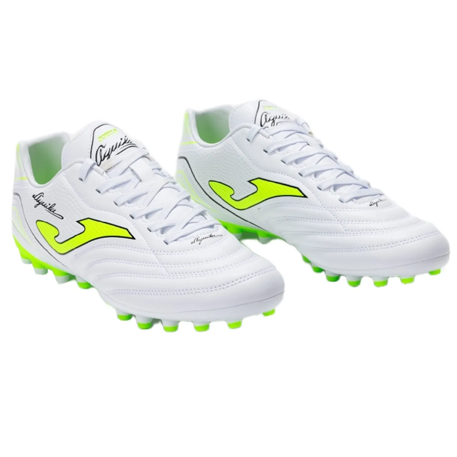 Las Joma Aguila 2502 AG en color blanco son botas de fútbol polivalentes para césped artificial, perfectas para jóvenes que quieren perfeccionar técnica y control.