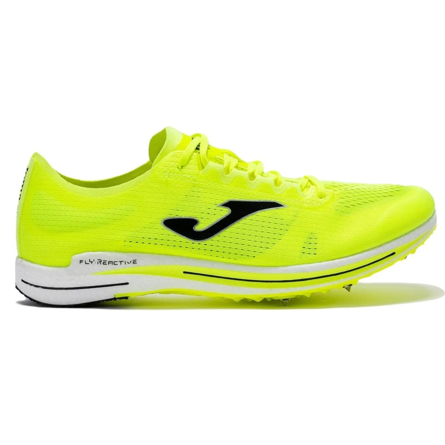 Zapatillas de clavos de running y atletismo de Joma, las R.R1200 Skypes 3-6-9mm en color amarillo flúor, perfecto para competición y pruebas de medio fondo.