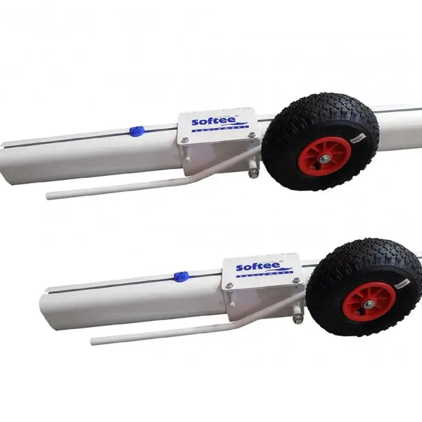 El sistema optimizado de este juego de dos ruedas para transportar porterías de aluminio facilita el movimiento de las estructuras, garantizando comodidad y eficiencia en cada traslado.