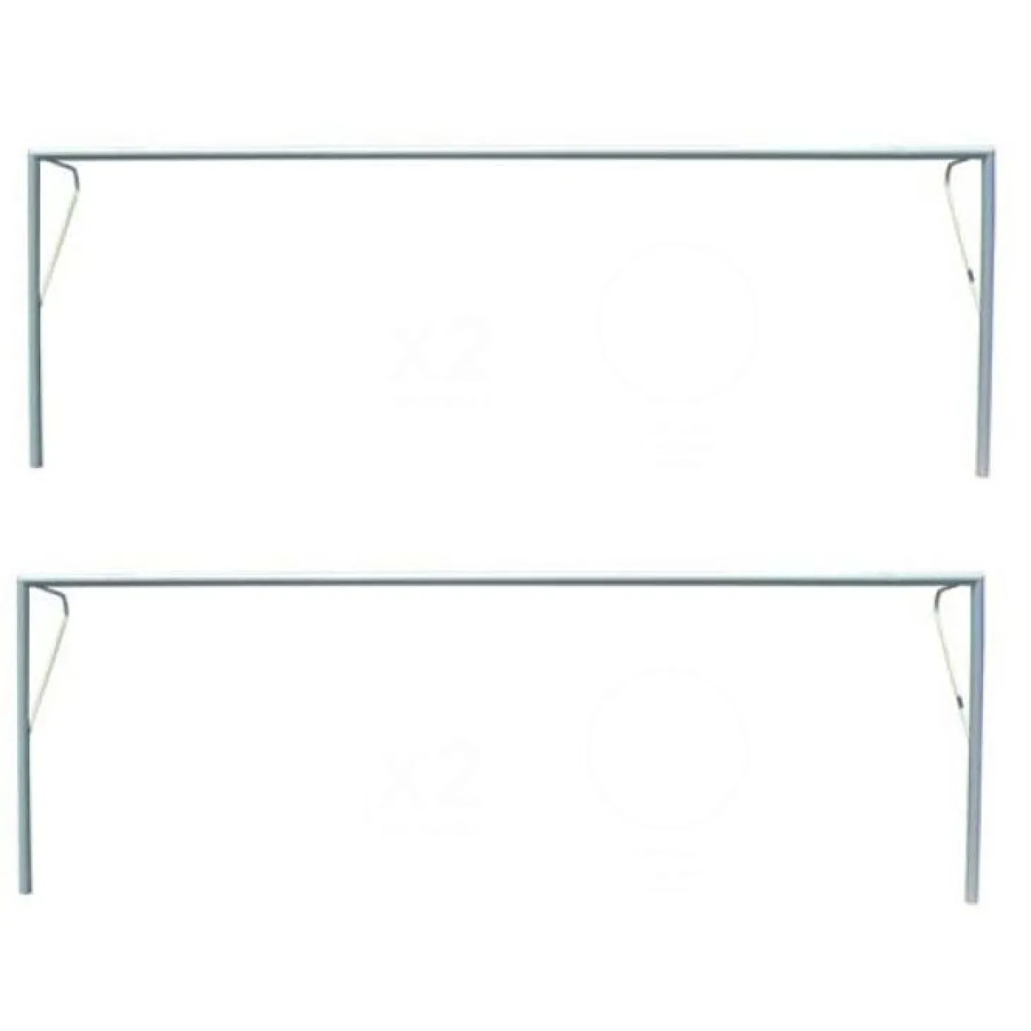 Contiene arquillos laterales de acero de sección 33 mm para la caída de la red y soportes de poliamida para la sujeción de la red a la portería.