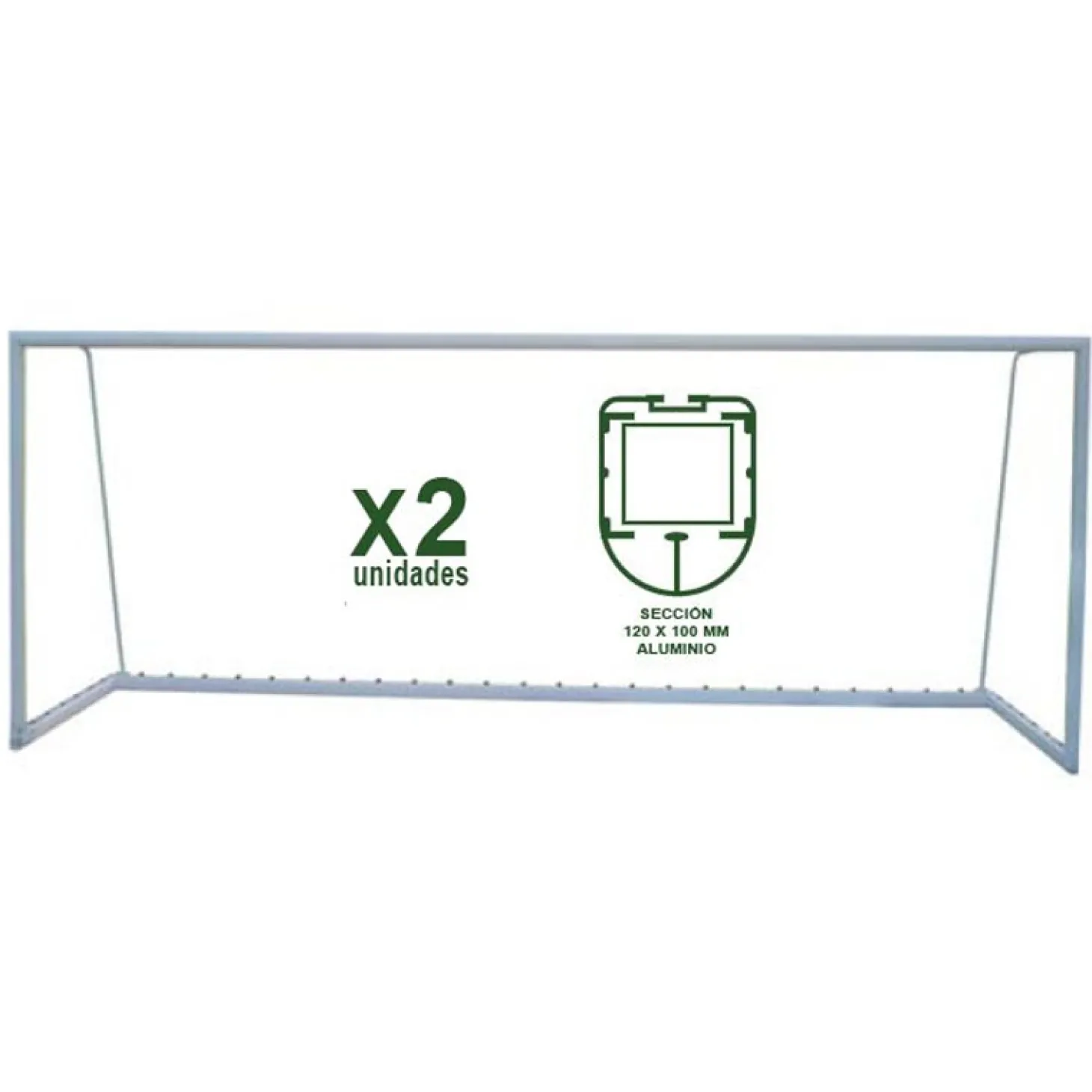 Juego de 2 porterías reglamentarias de fútbol 11 trasladables fabricadas en aluminio oval de 120 x 100 mm.