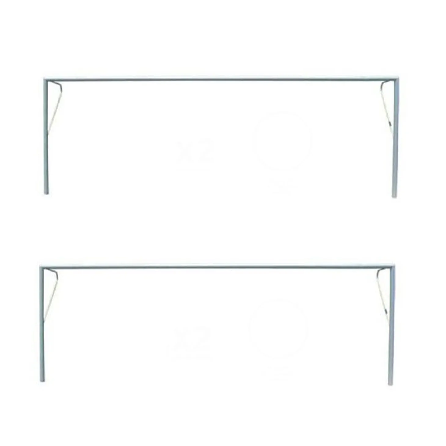 Contiene arquillos laterales de acero de sección 33 mm para la caída de la red y soportes de poliamida para la sujeción de la red a la portería.