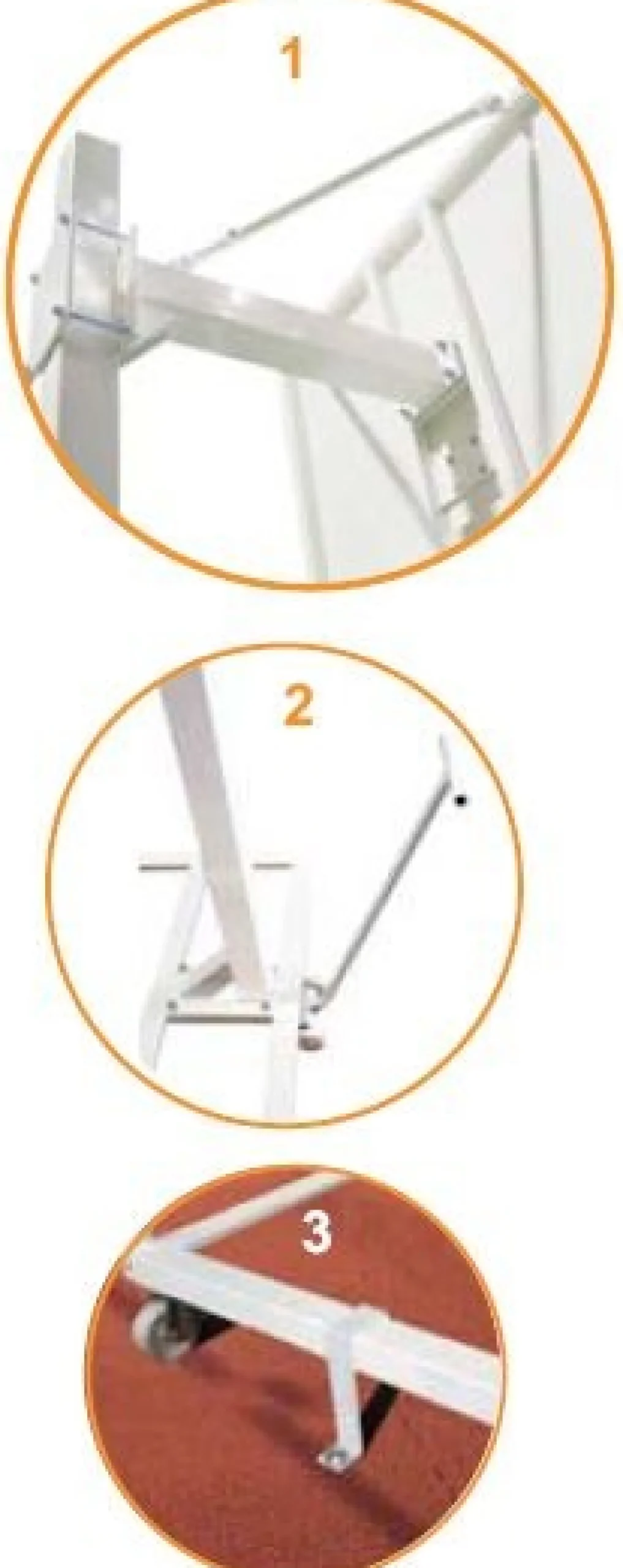 - Tirantes de estabilización al tablero (imagen 1) y a la base con ruedas.