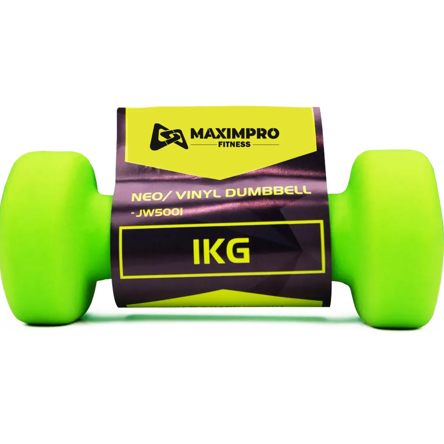 Ejercítate en casa con esta mancuerna de hierro recubierta de neopreno de 1kg de Maximpro. Color verde. PRECIO POR UNIDAD.