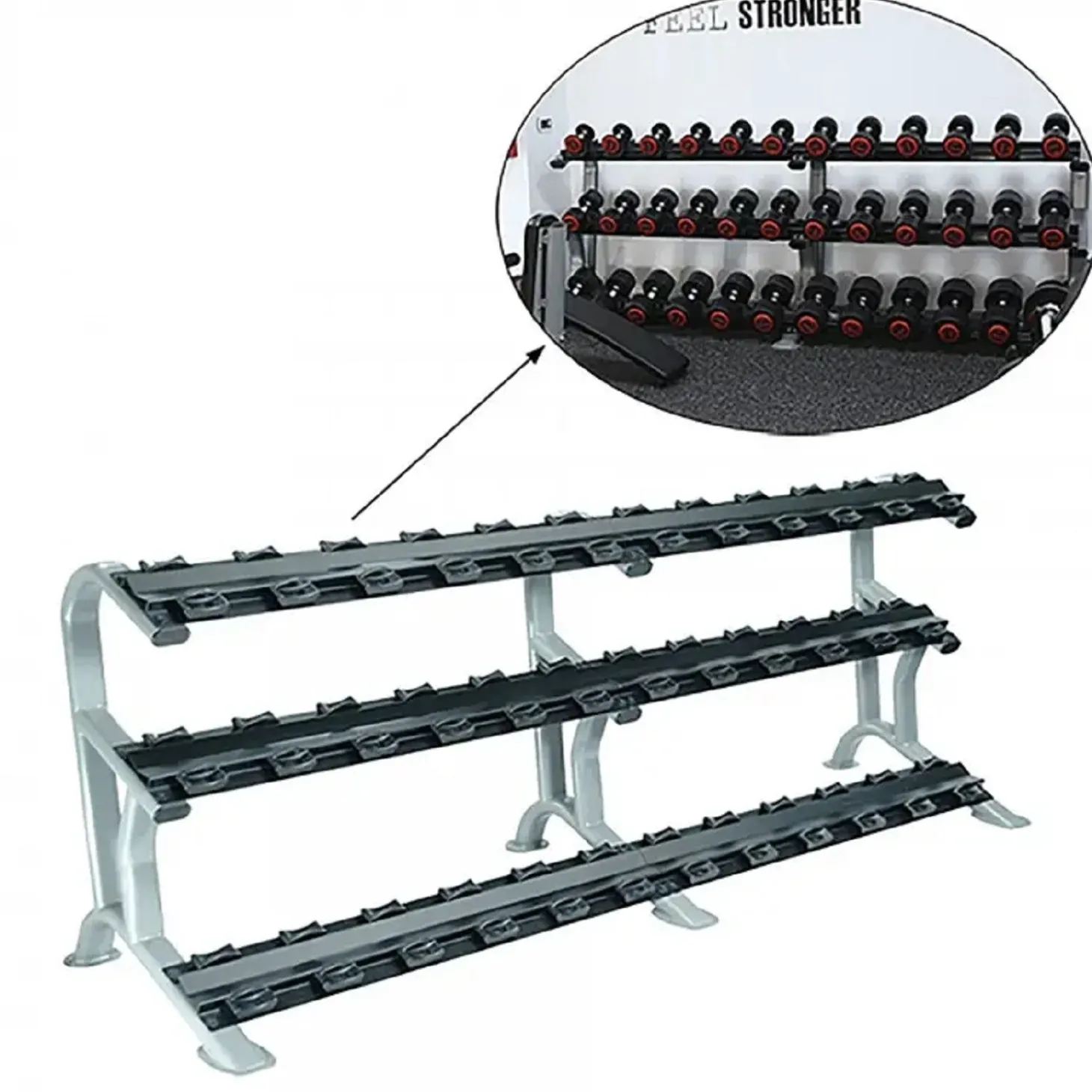 - Capacidad total para 36 mancuernas distribuidas en 3 niveles