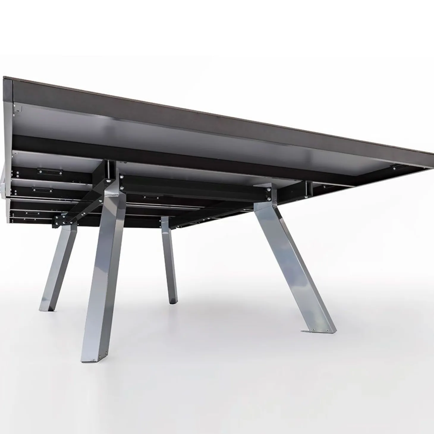 Esta mesa ping pong para exterior destaca por su gran robustez y estabilidad, gracias en gran parte a sus patas externas de 100x60mm realizadas en acero galvanizado. Además, cuenta con la posibilidad de poder anclarla al suelo con tornillos antirrobo. Esta mesa ping pong antivandálica es la mejor alternativa a las mesas de ping pong de hormigón.