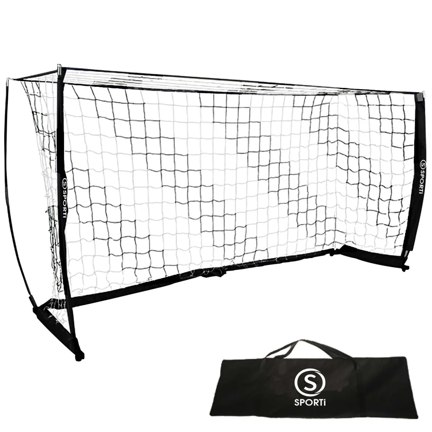 Esta miniportería de fútbol tiene una estructura de acero y tubo de fibra de vidrio que la hace muy resistente. Incorpora una red de malla de poliéster de 100x100mm sin nudo, ya instalada en la estructura para facilitar el montaje. Rápida y fácilmente instalable con un sistema de clips. Se entrega con bolsa de transporte.
