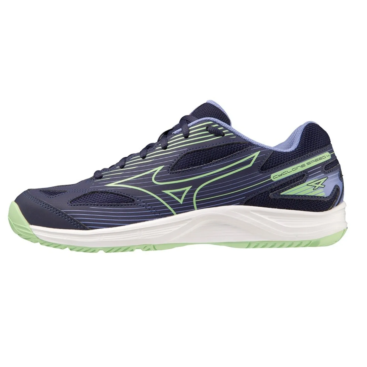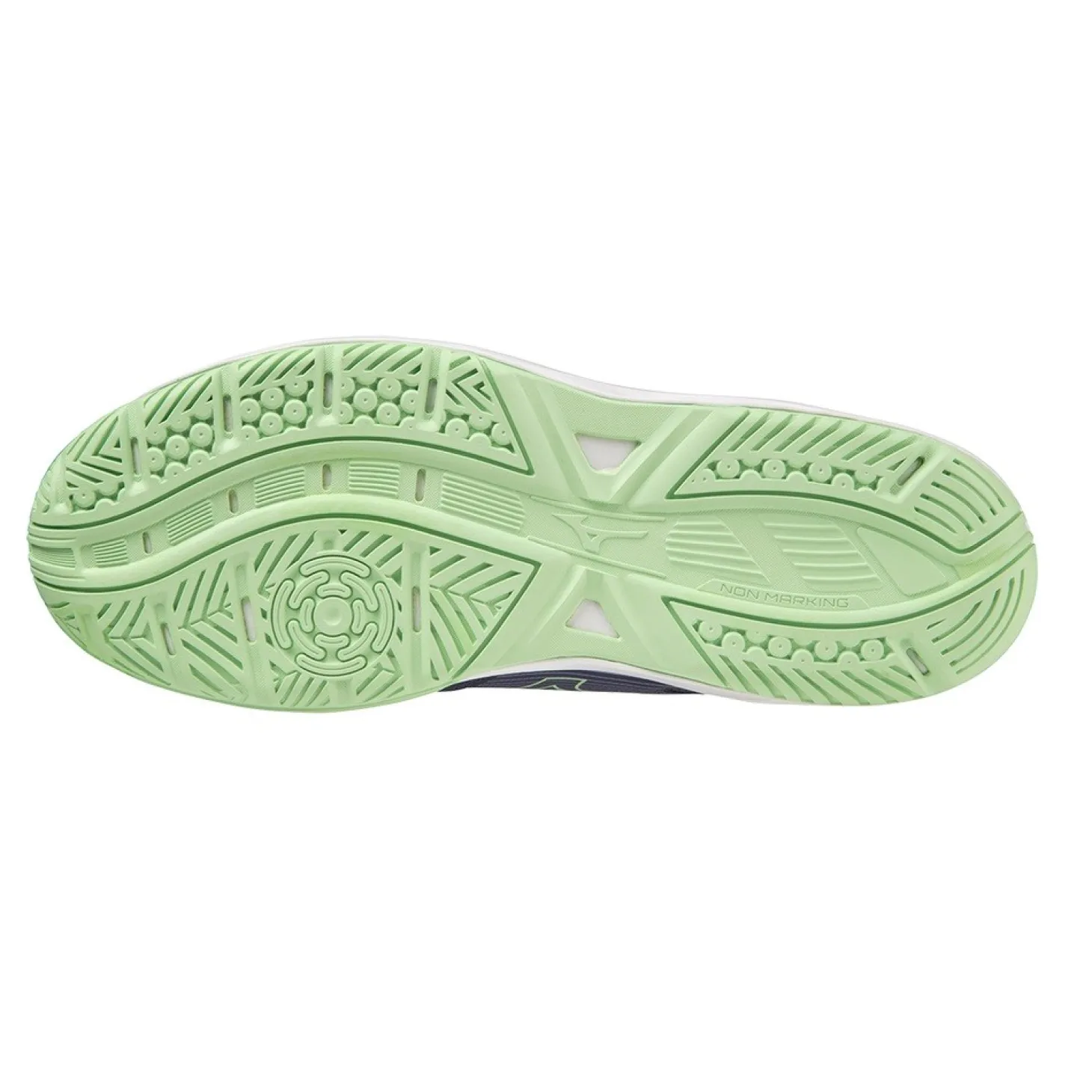 Mizuno nos trae estas zapatillas de voleibol, las Cyclone Speed 4 en color azul marino con la suela verde, perfectas para mejorar tu juego sobre la pista.