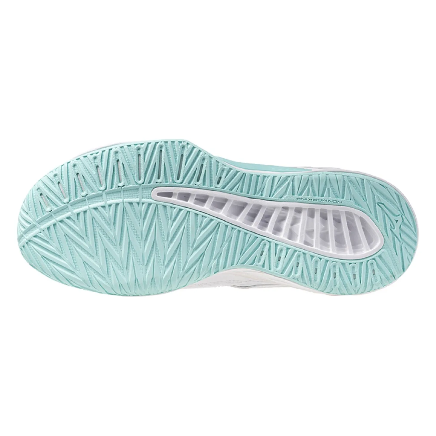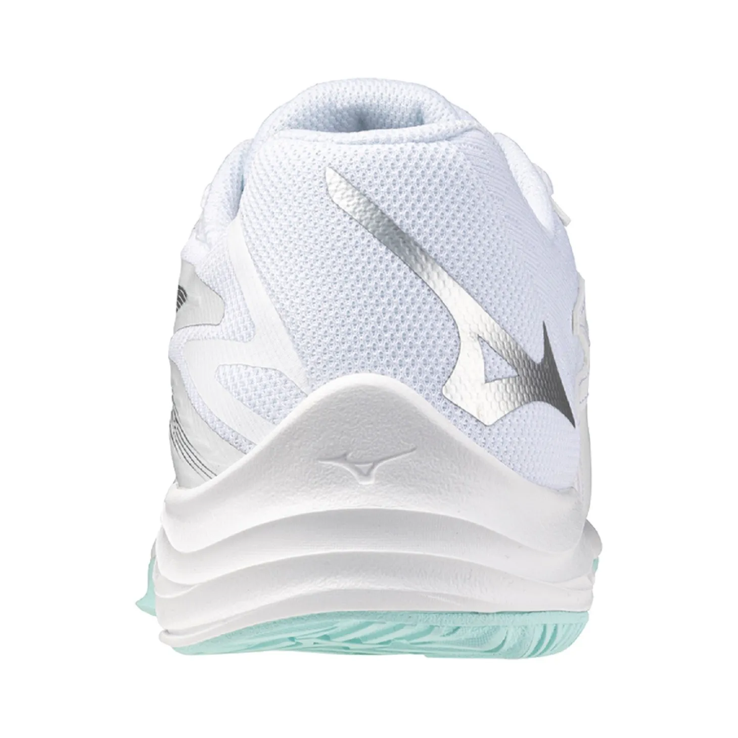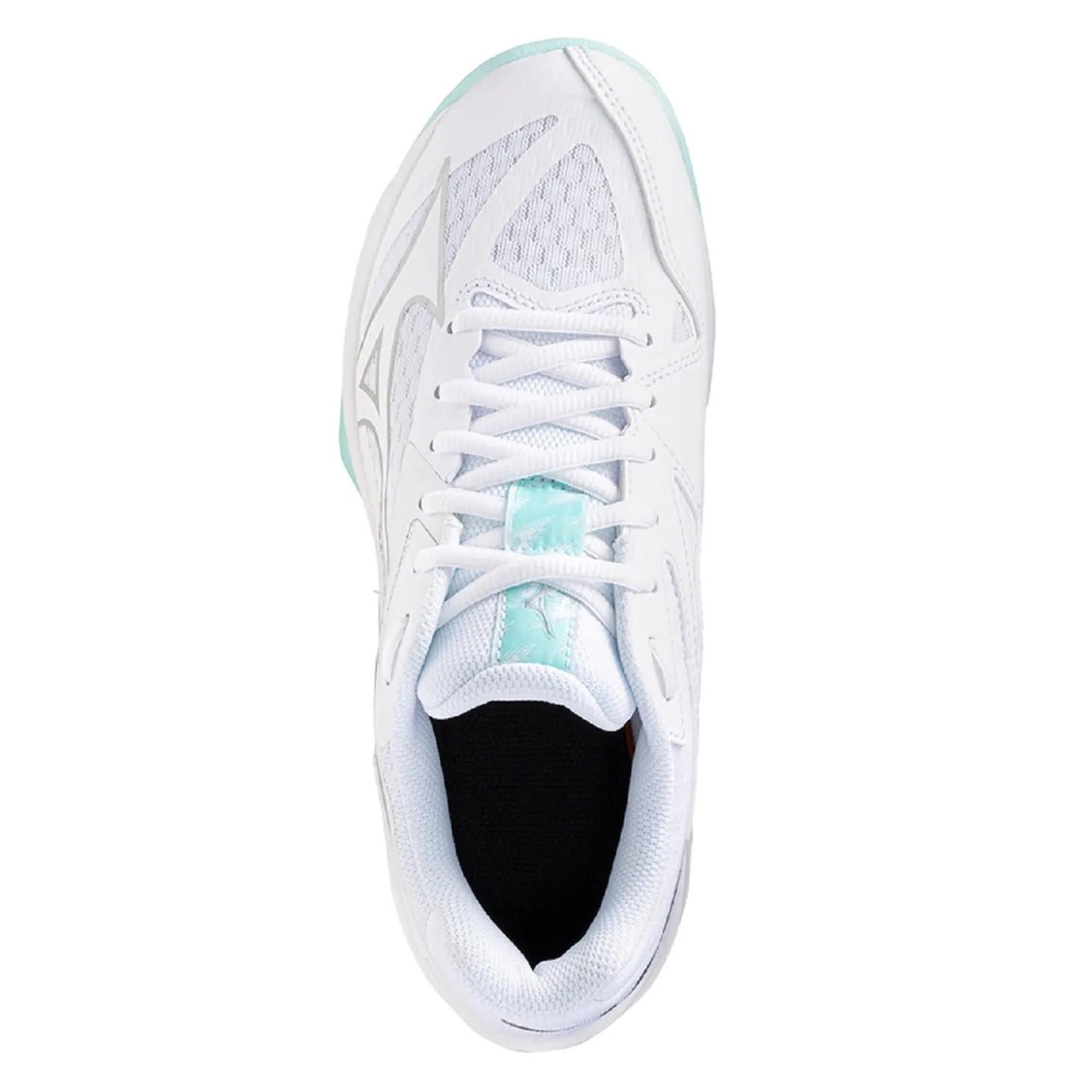 Las Mizuno Thunder Blade Z WOS en color blanco y turquesa son la elección ideal para jugadoras que buscan comodidad y eficiencia en la pista.