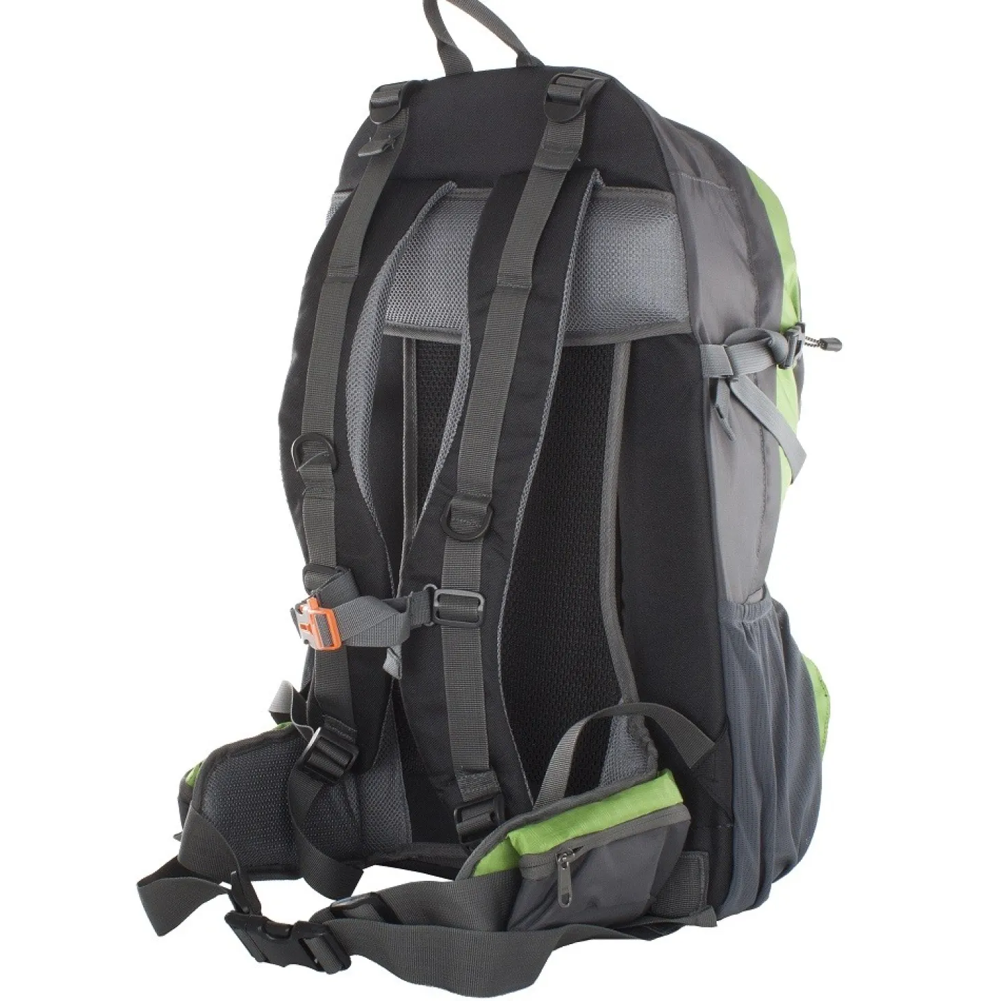 Joluvi nos trae la Angliru 55 en color verde, una mochila fabricada con poliéster RipStop y poliéster 900D con laminado impermeable TPU, con un interior reforzado con poliéster 600D con laminado hidrófugo AC.