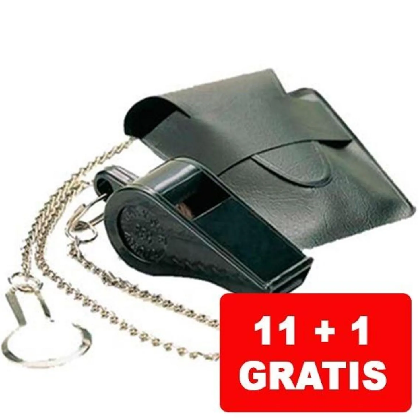 Compra 11 y recibe 12 silbatos. El silbato de toda la vida. Con cadena y funda.