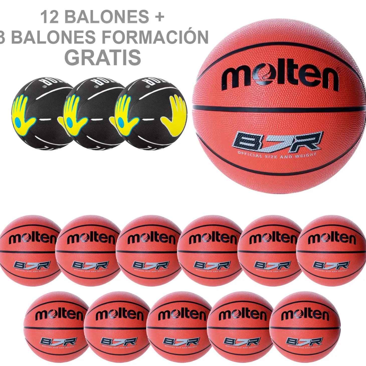 Comprar Pack 12 Balones Baloncesto Molten B-R2 + 3 Balones Zastor Formación Gratis