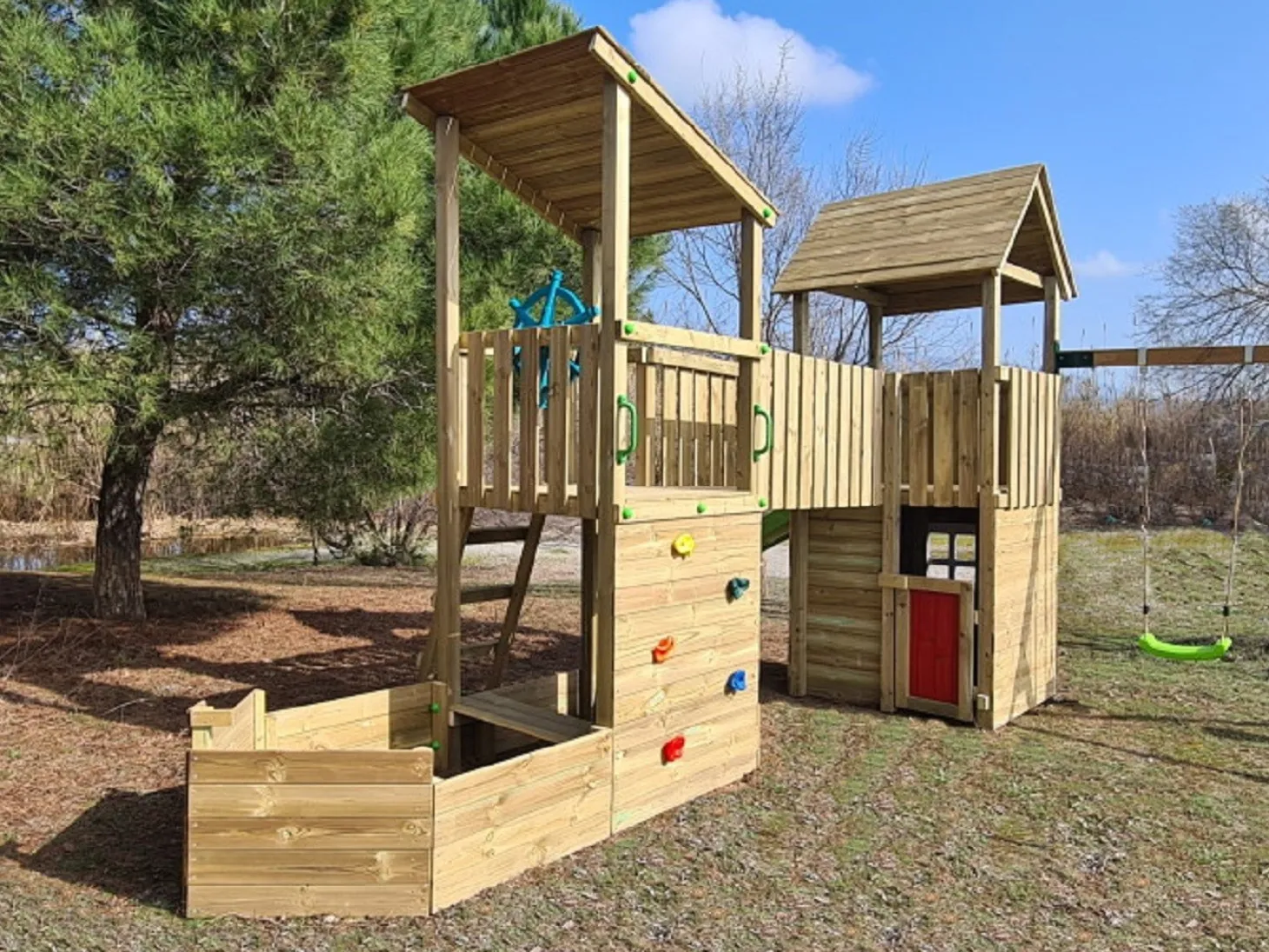Por otro lado incluye la Torre Nautilus, una casa elevada con techo inclinado, con arenero (sin arena) en forma de barco y una escalera de madera. También tiene una pared de escalada con piedras y un timón de barco. Incluye igualmente anclajes, tornillería y tapones.