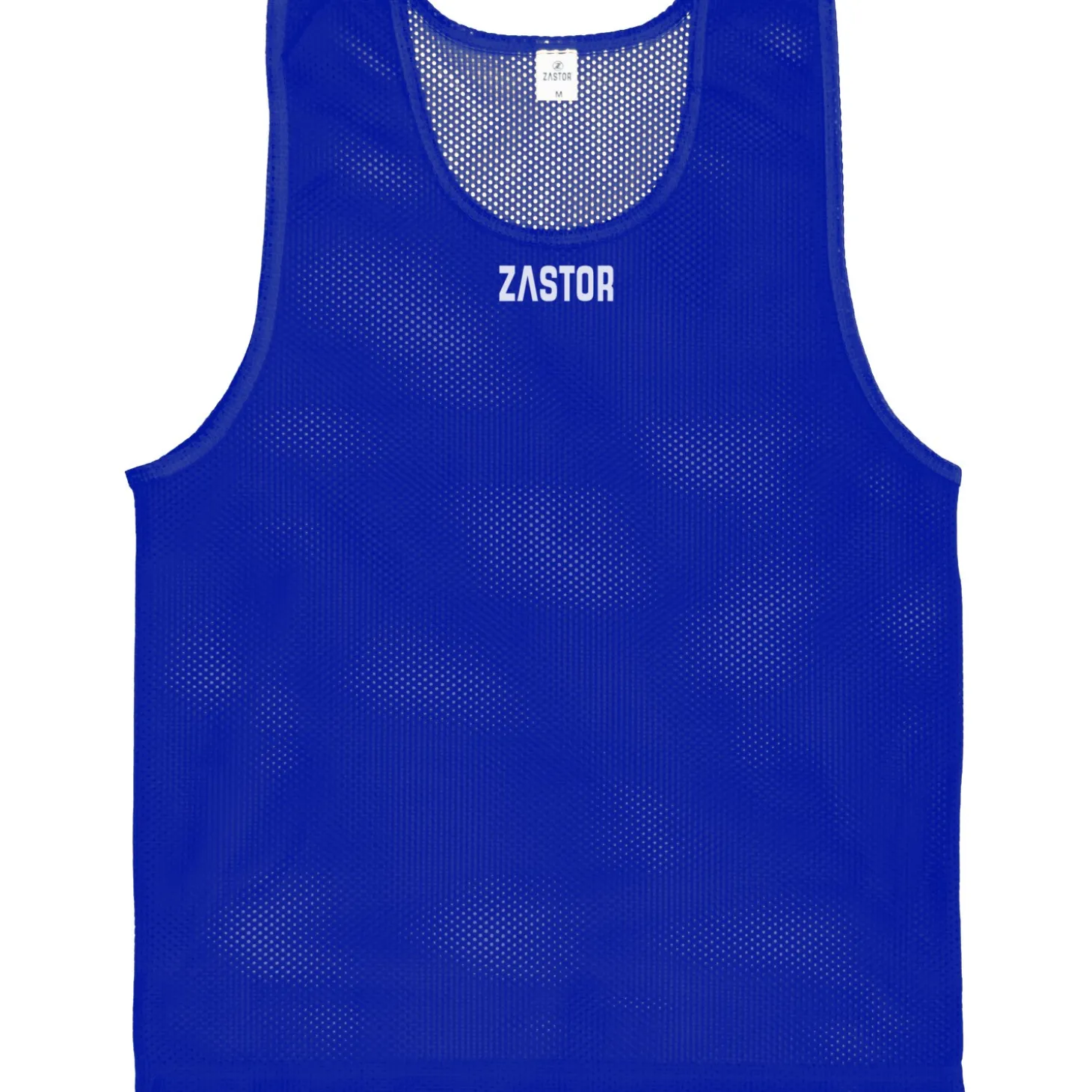 Peto deportivo de la marca Zastor en color azul, hecho con poliéster 100% reciclado, con tejido perforado para una mayor transpiración, perfecto para ser usado en cualquier disciplina deportiva.