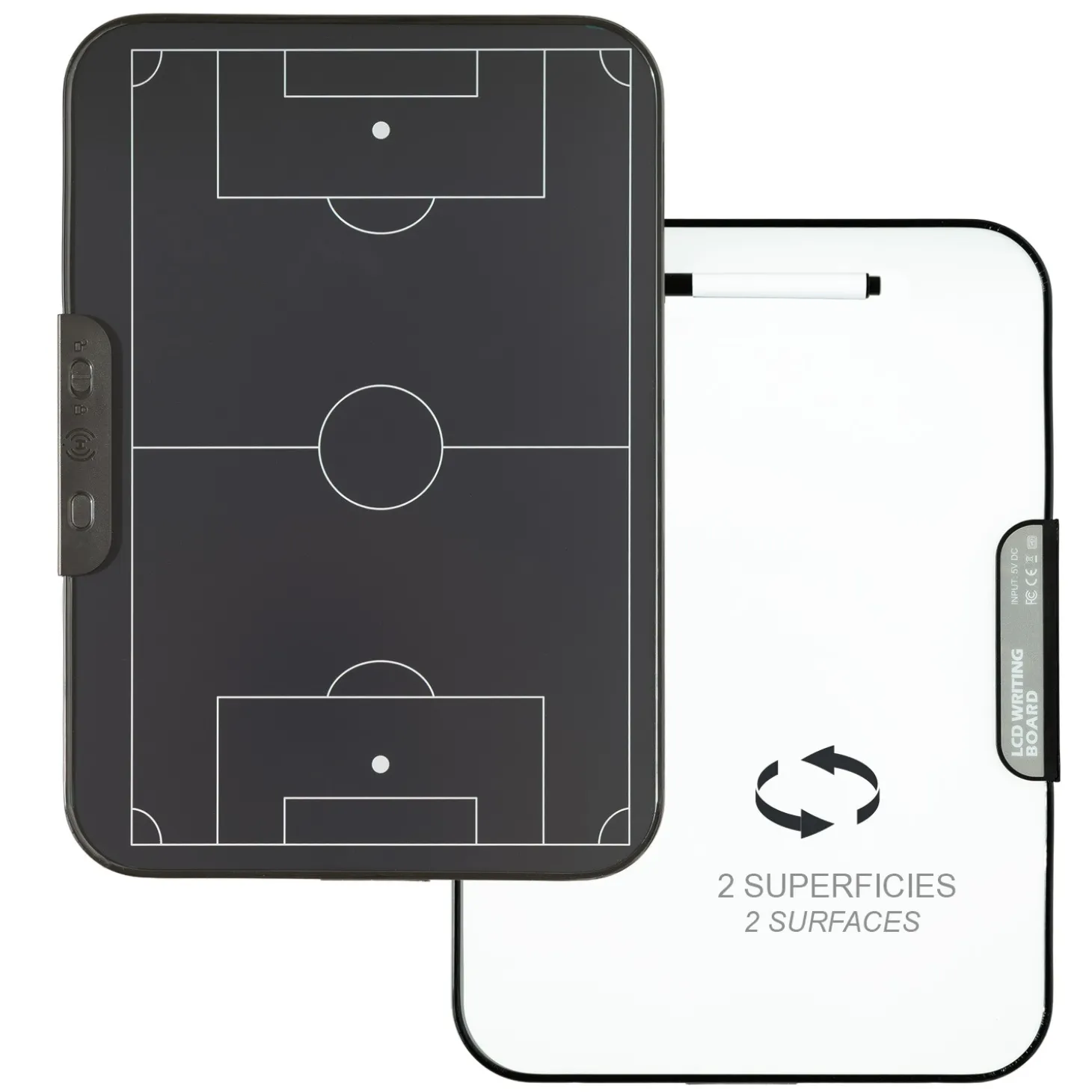 Con unas dimensiones de 33x23cm y una pantalla LCD de 16 pulgadas (40cm), ofrece el espacio perfecto para diseñar esquemas tácticos de cualquier deporte sin necesidad de usar papel. Esta pizarra combina lo mejor de ambos mundos: por un lado, su pantalla electrónica LCD te permite dibujar y borrar tus tácticas con un solo clic, evitando residuos y optimizando el tiempo de preparación; por otro, su superficie de escritura tipo velleda conserva el método tradicional para quienes prefieren el contacto directo con el rotulador. Fabricada en PVC de alta resistencia, resulta ligera, duradera y cómoda de transportar, ideal tanto para el campo como para el vestuario. La Klopp de Zastor es una herramienta indispensable para entrenadores que buscan claridad, rapidez y eficiencia en la comunicación con sus equipos.
