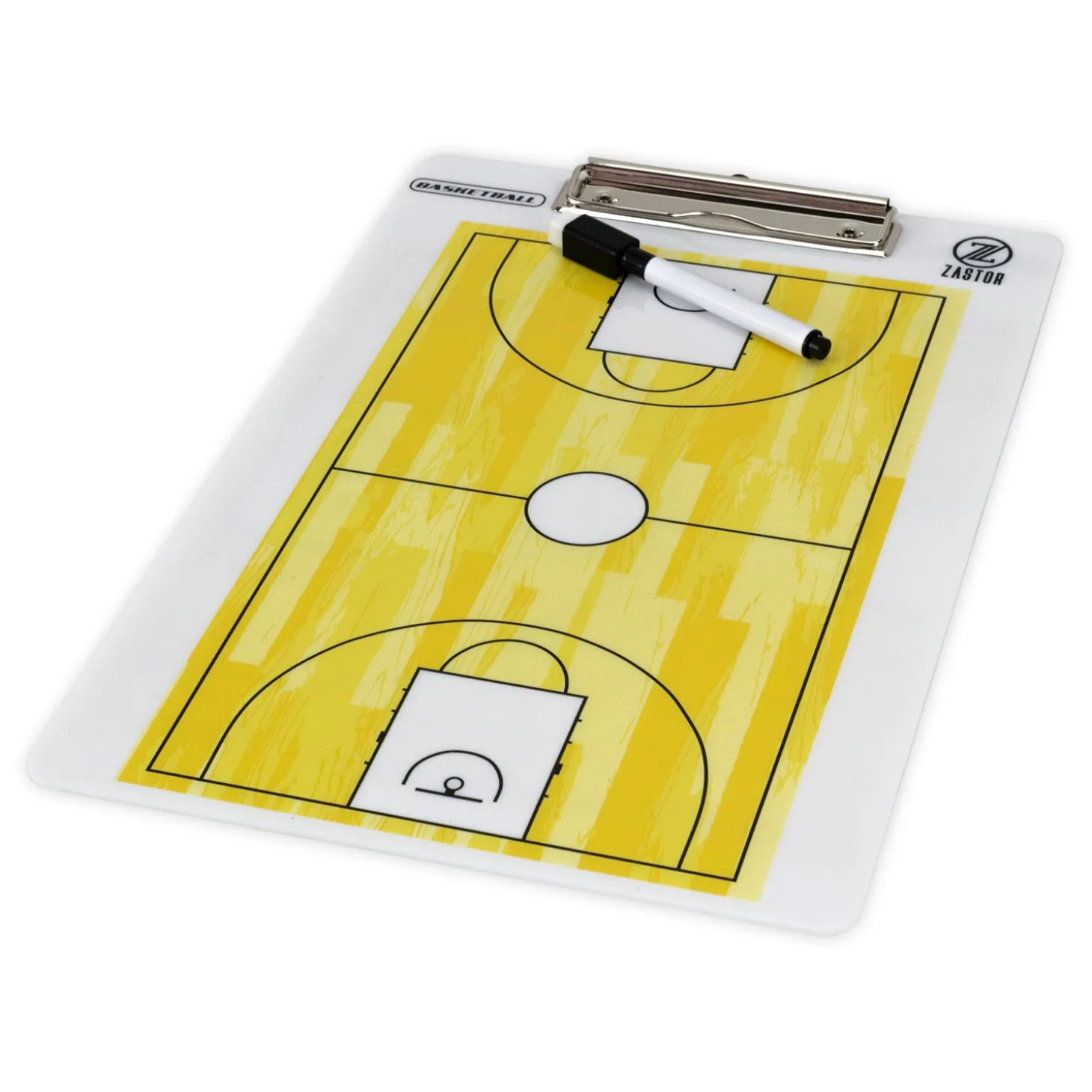 Pizarra tácticas de Baloncesto reversible con rotulador tipo Velleda y clip para bloc de notas.