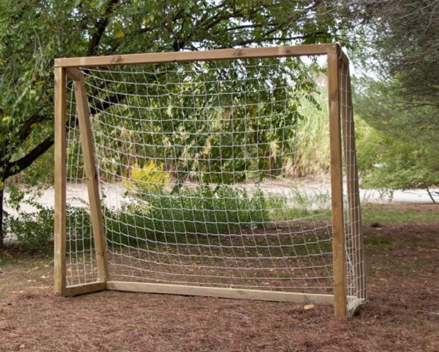 Esta portería fabricada en madera de pino cuadrada y tratada para resistir cualquier inclemencia del tiempo es una opción ideal para colocar en tu jardín y jugar con tus hijos. Cumple la normativa europea EN71-8 de uso privado e incluye red de malla y anclajes para la tierra, para que quede bien fijada al suelo. Las medidas de la portería WoodGame XL es de 3x2m, perfecta para mejorar tus habilidades con el balón.