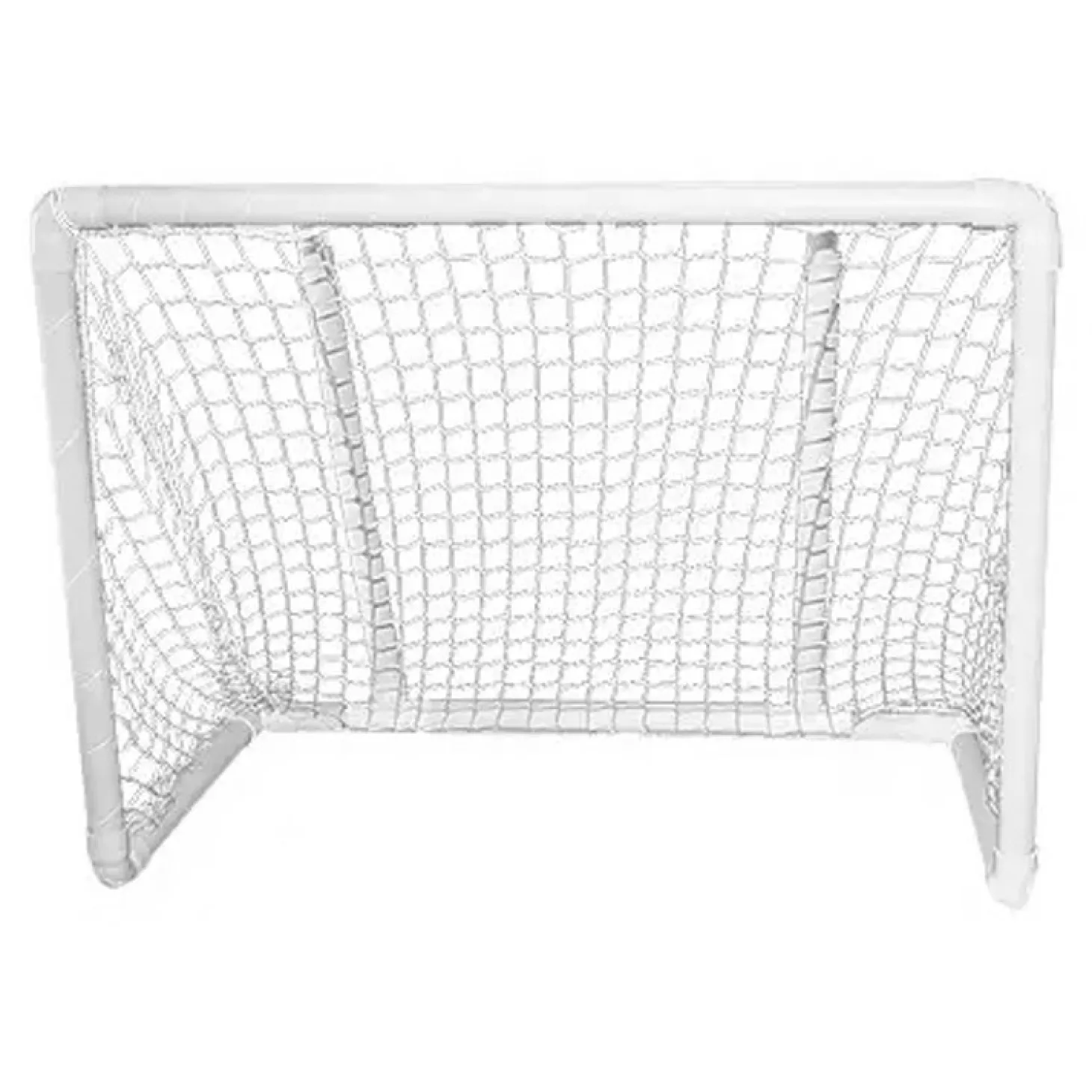 Portería fabricada en tubo de PVC con refuerzos para una mayor consistencia del conjunto. Medidas 100 x 65 cm. Fondo 45 cm.