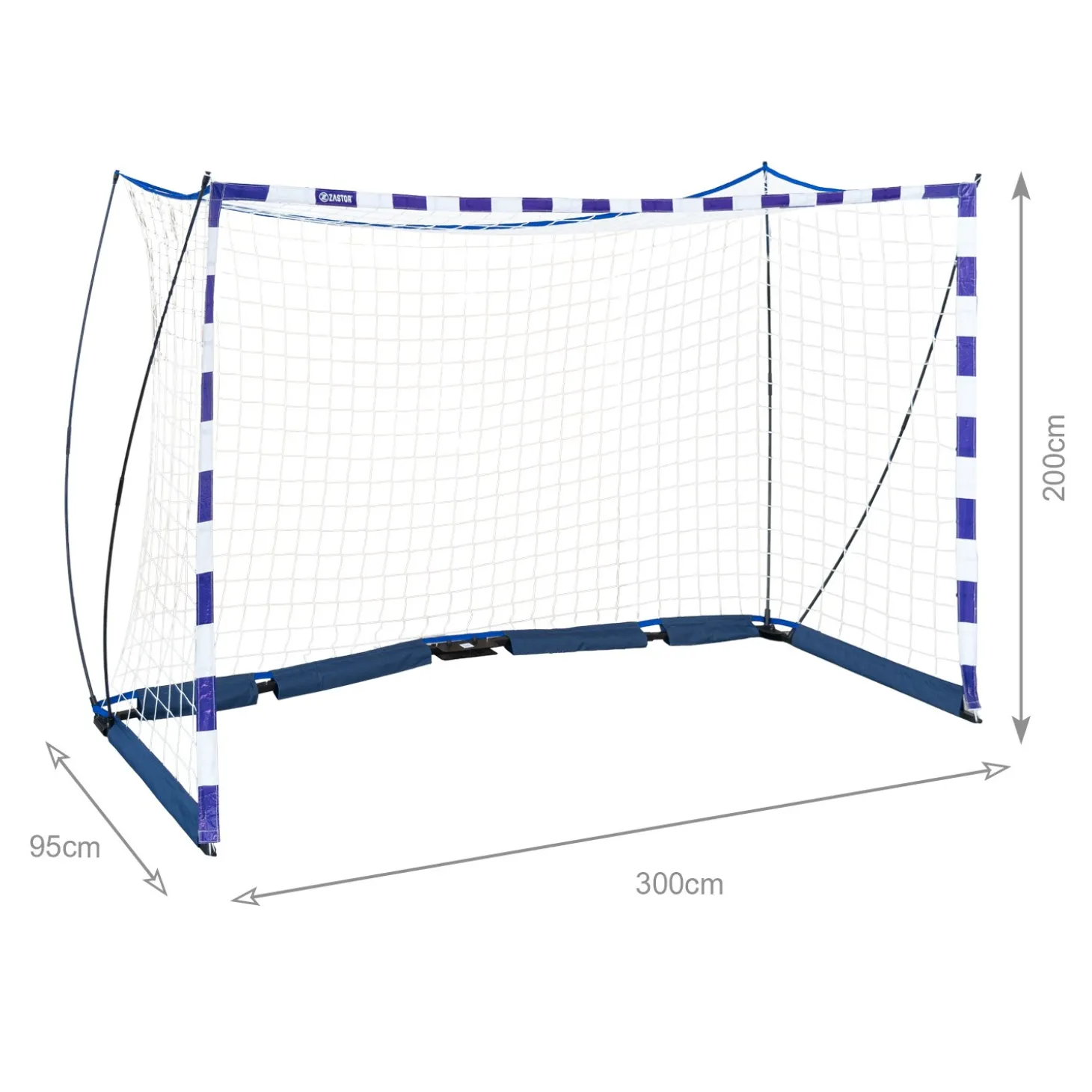 La portería plegable Zastor Tremor de 300×200×95cm ofrece dimensiones grandes para un entrenamiento más realista, sin renunciar a la comodidad del transporte.