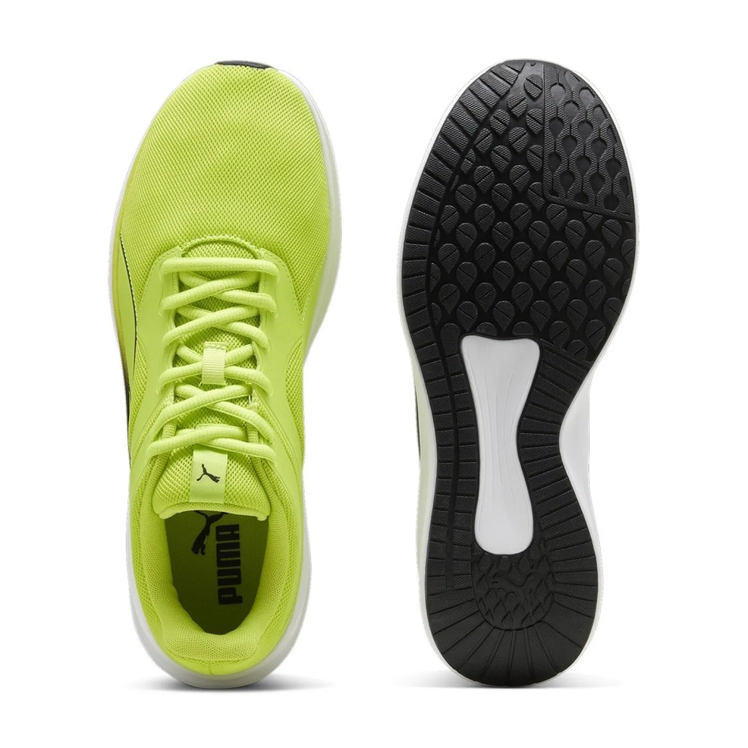 Descubre las zapatillas de running Transport de Puma en color verde lima, ideales para carreras ligeras y tu día a día.