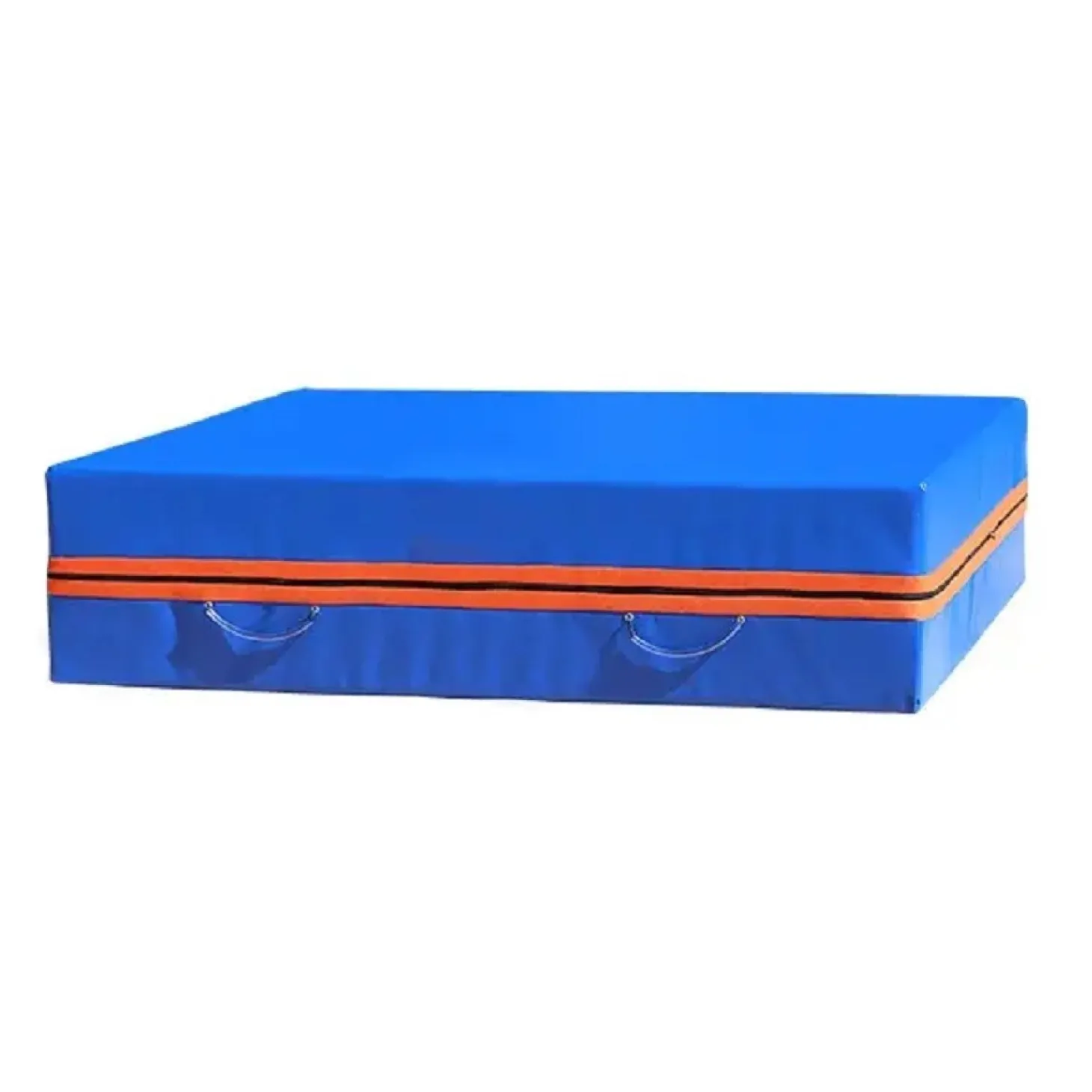 Colchoneta de gimnasia reforzada con una resistente lona plastificada de PVC y equipada con prácticas asas.