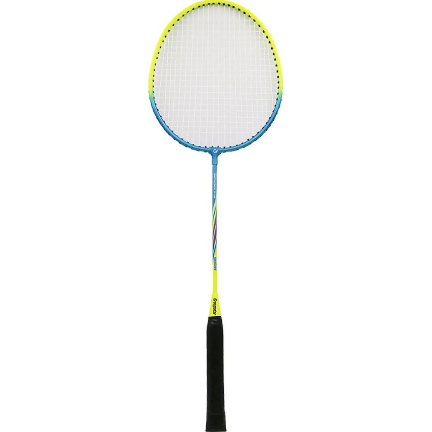 Raqueta de bádminton compuesta ideal para iniciación. Material: Acero/aluminio. Color amarillo/azul.