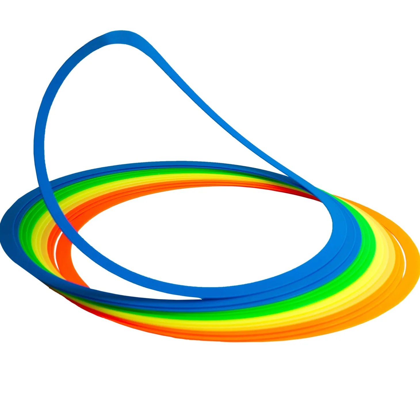 Llévate este set de 12 aros extraplanos y flexibles, ideales para realizar rutinas de entrenamiento y mejorar agilidad, coordinación y destreza.