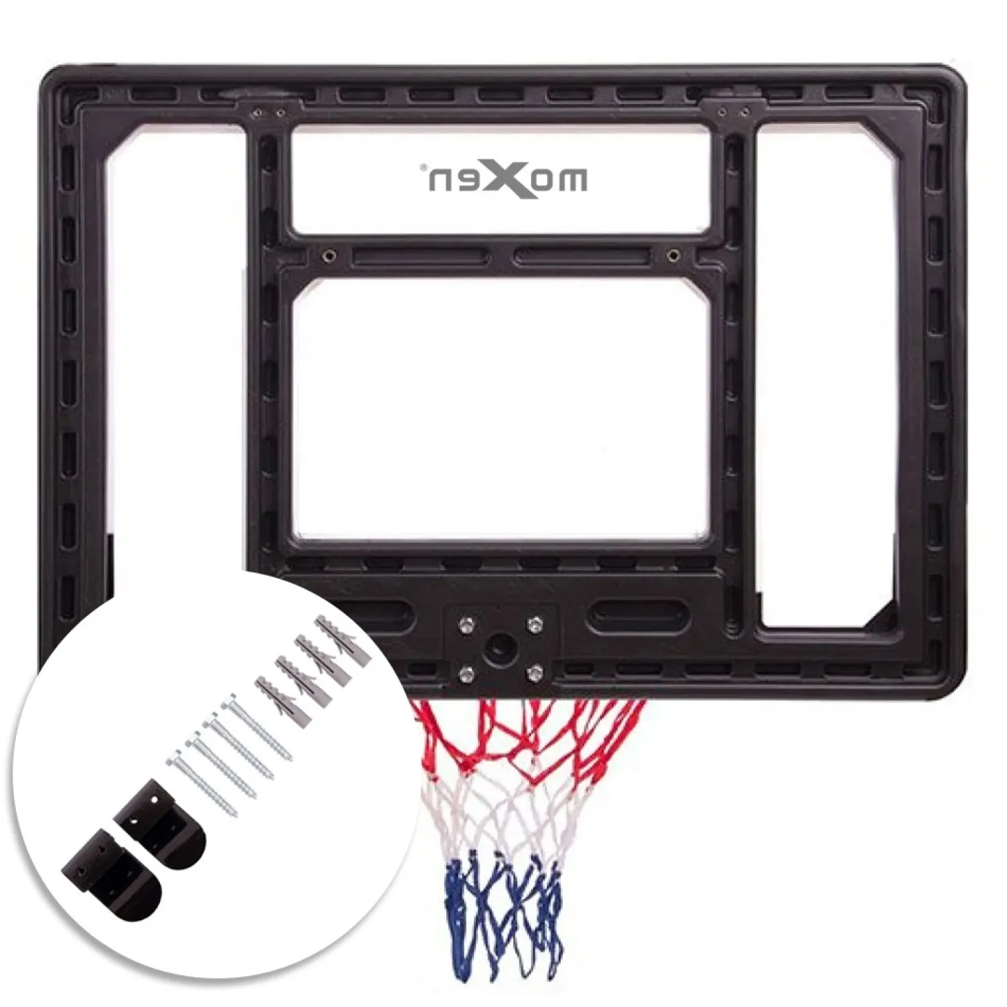 Tablero de 80×58 cm ideal para colocarlo en cualquier lugar, ya sea de interior o de exterior. Gracias a su sistema de anclaje y fijación hace de este tablero una gran opción versátil para disfrutar del baloncesto allá donde vayas. Panel trasero fabricado en policarbonato y marco de hierro metálico resistente. El aro tiene Ø38cm y 16mm de grosor. Con este set podrás disfrutar de una experiencia de baloncesto profesional en la comodidad de tu propio hogar.