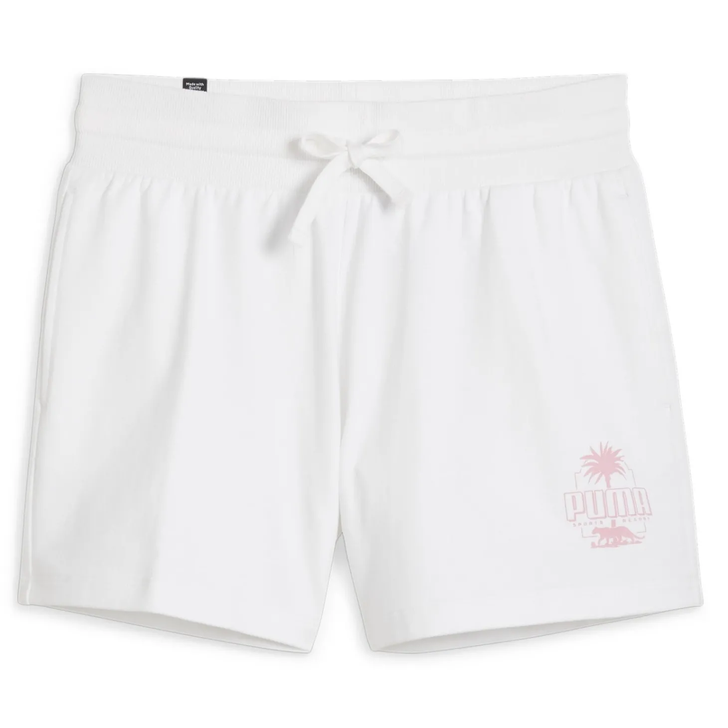 Descubre el pantalón corto ESS+ Palm de Puma en blanco, tu compañero ideal para un verano fresco y cómodo. Con cintura acanalada ajustable y dos prácticos bolsillos laterales, es perfecto para adaptarse a tu estilo de vida activo.