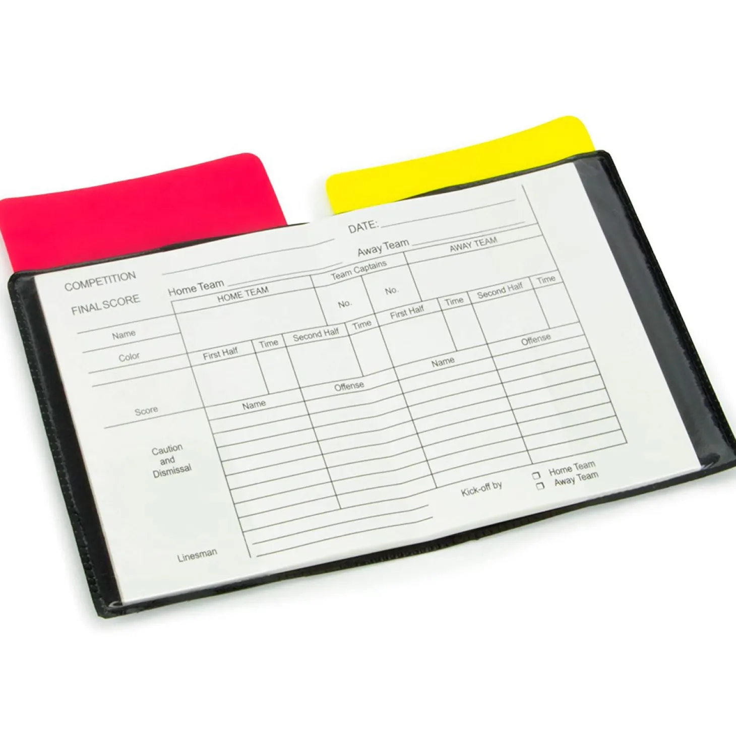 Práctico tarjetero de árbitro con tarjetas amarilla y roja así como hojas de anotaciones para los partidos.