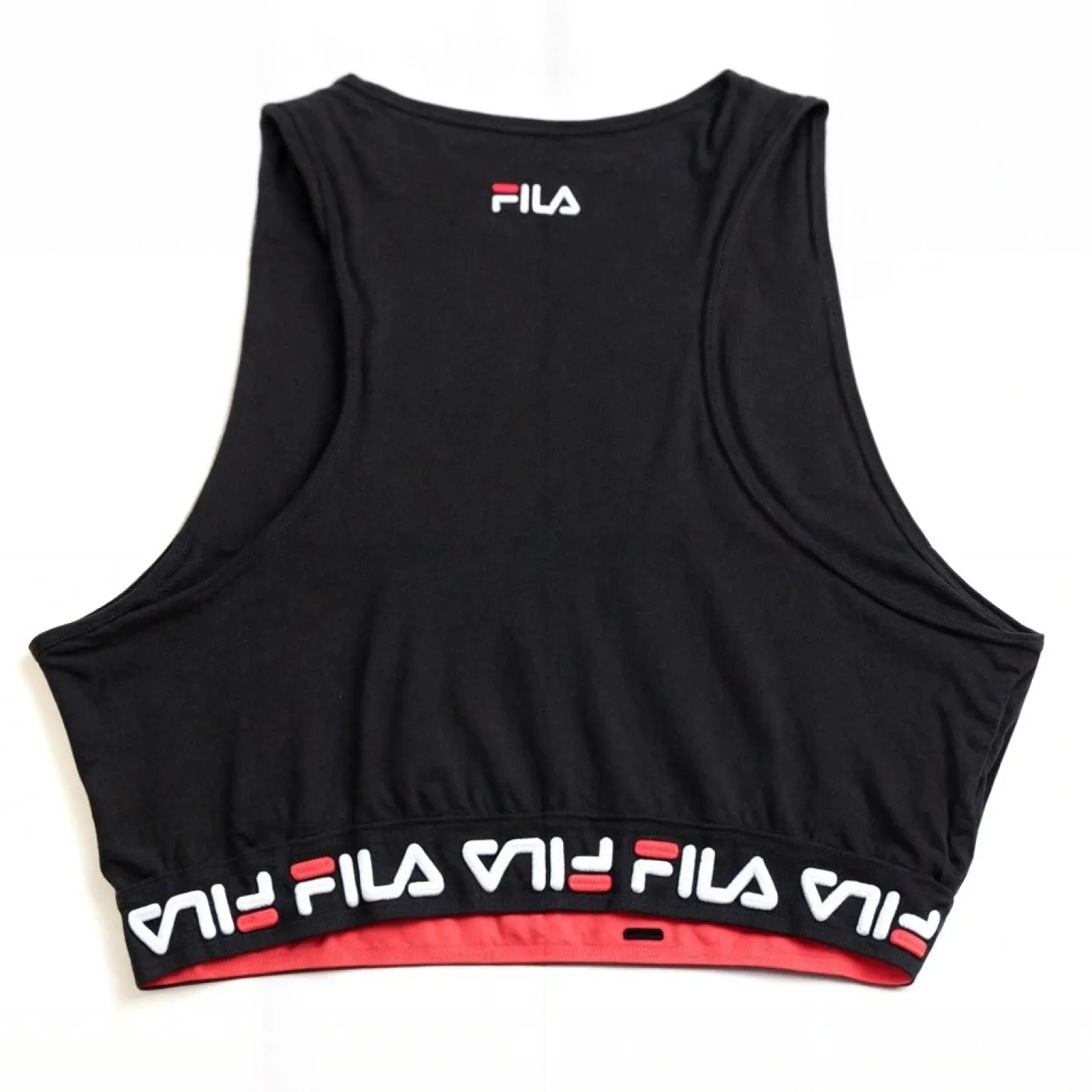 Realiza deporte de manera cómoda y segura con el top deportivo Savannah de Fila en color negro.
