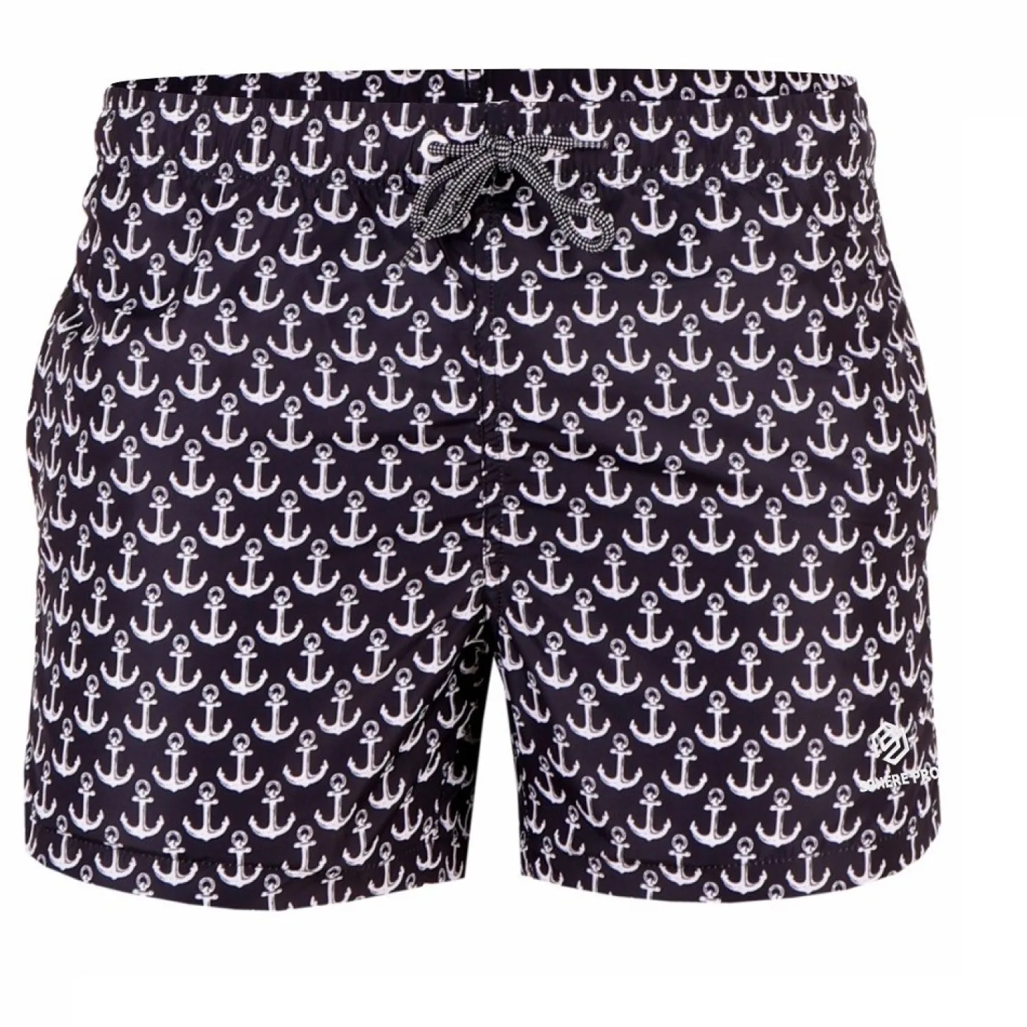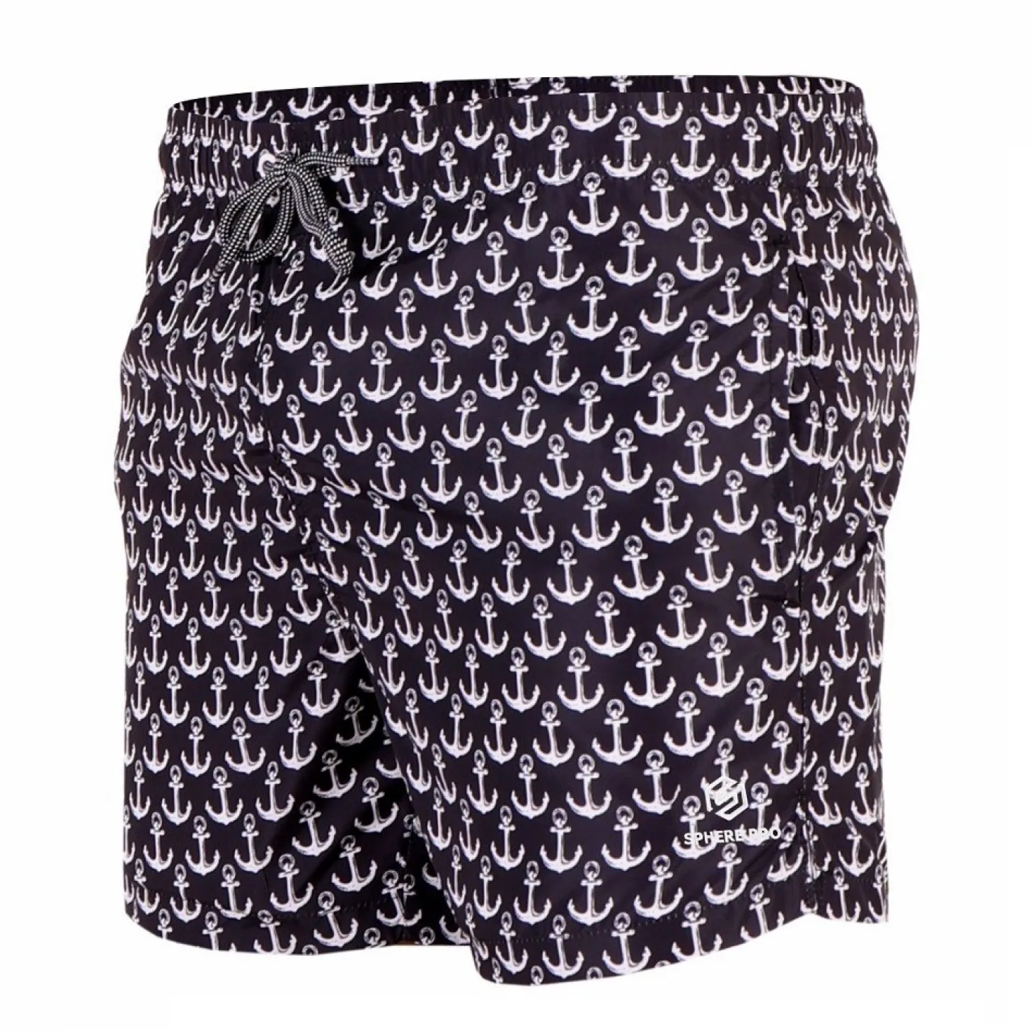 Nuevo bañador tipo bermuda de la marca Sphere Pro, el Tinny Anchor en color negro con un fondo de anclas, ideal para lucirlo en la playa o en la piscina.