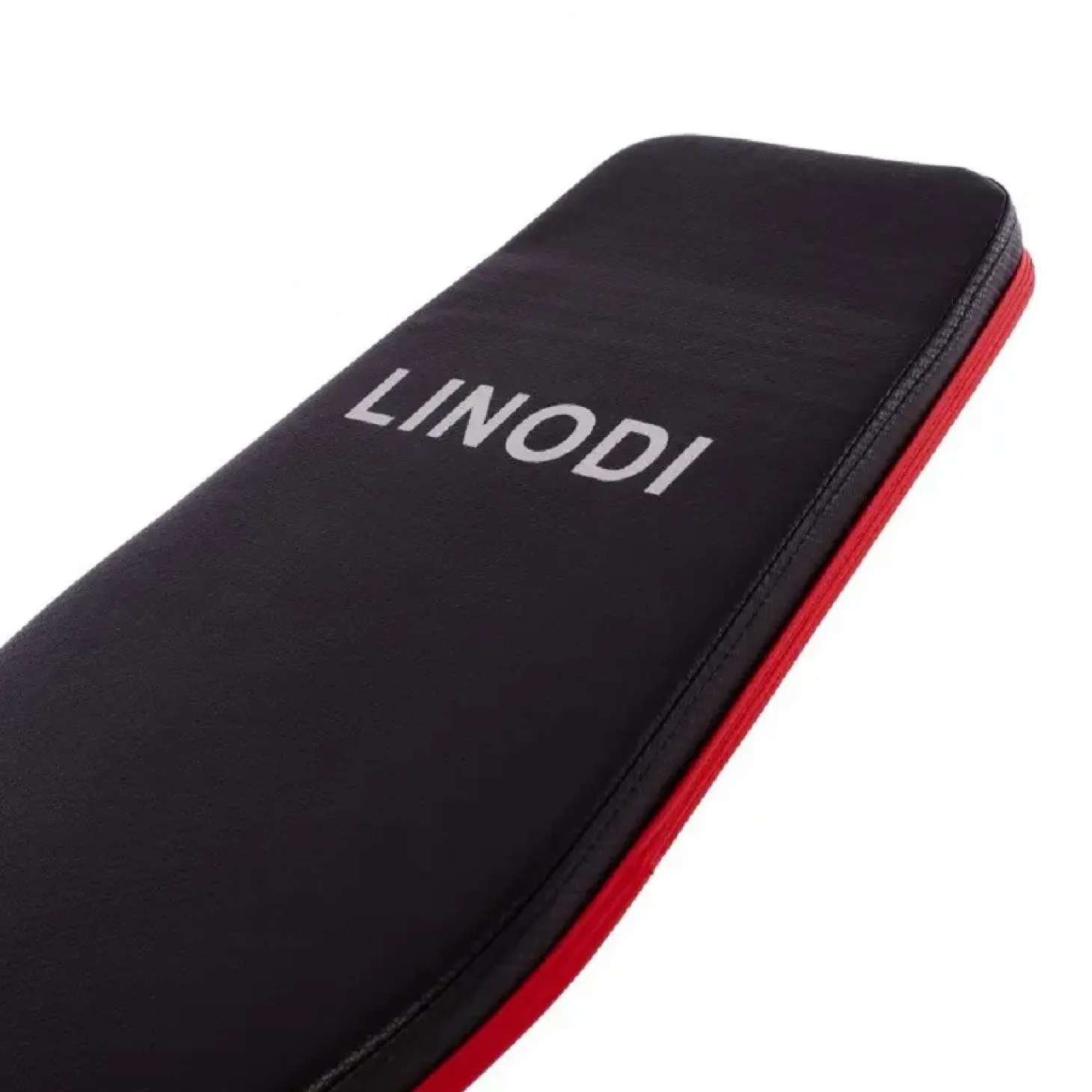 Banco de musculación multifunción regulable, en color negro y rojo, con el que podrás realizar ejercicios de fuerza y pesas, entre otros.