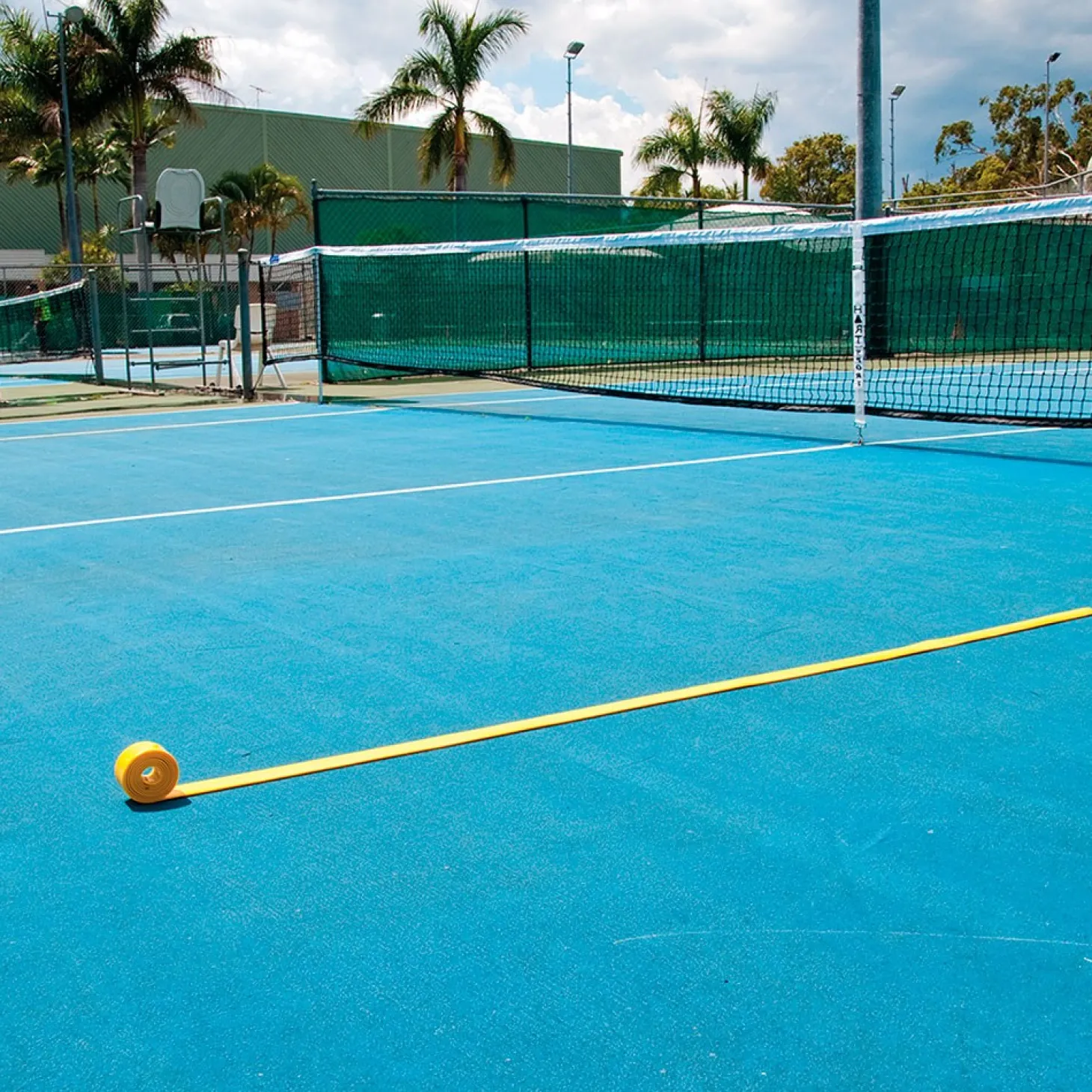 Banda de marcaje de campos utilizada en gimnasios, pistas deportivas y de recreo o en cualquier lugar donde se necesite un marcaje del suelo temporal de fácil y rápida colocación.