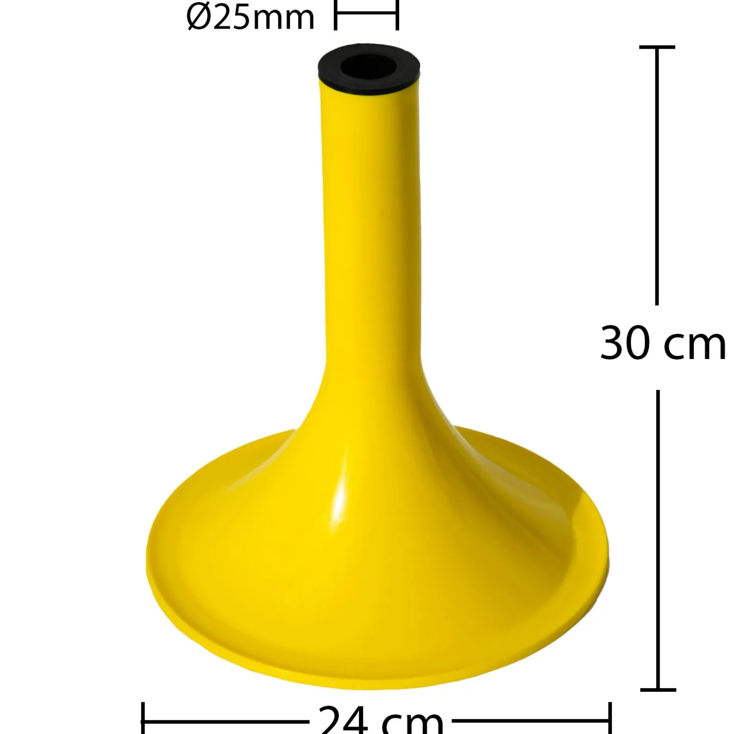 Con un diámetro de 24 cm y una altura de 30 cm, esta base proporciona un soporte firme para picas de diferentes tamaños, permitiendo configurar circuitos de entrenamiento adaptados a diversas disciplinas como fútbol, atletismo y entrenamiento funcional. Fabricada con materiales de alta calidad, es resistente a impactos y condiciones climáticas adversas, lo que la convierte en una opción duradera para uso en interiores y exteriores. Gracias a su diseño robusto, la base asegura que las picas permanezcan en su lugar, minimizando el riesgo de caídas y permitiendo un entrenamiento seguro y eficiente. Su peso optimizado proporciona estabilidad sin dificultar el transporte, facilitando su colocación en cualquier tipo de superficie. Ideal para entrenadores, preparadores físicos y deportistas que buscan mejorar la agilidad y precisión, la base alta Zastor Nelly es una herramienta imprescindible en cualquier sesión de entrenamiento. Además, su color amarillo mejora la visibilidad en el campo, asegurando un uso óptimo en todo momento.