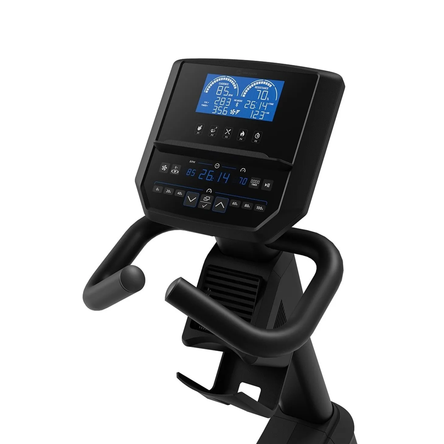 Su diseño de cuadro abierto facilita el acceso, permitiendo a los usuarios subir y bajar con facilidad. El asiento extragrande con soporte lumbar se desliza sobre un riel de aluminio, asegurando una posición de pedaleo óptima para cada usuario. Esta característica es especialmente beneficiosa para quienes buscan minimizar la tensión en la espalda durante sesiones prolongadas de ejercicio. Equipada con conectividad Bluetooth, la 5.0R permite sincronizar la consola con smartphones o tabletas, mejorando la experiencia de entrenamiento al integrar estadísticas y posibilitar el seguimiento con aplicaciones de fitness populares. La bicicleta ofrece 50 niveles de resistencia, brindando una amplia gama de intensidades para adaptarse a diferentes niveles de condición física y objetivos de entrenamiento. Además, cuenta con programas integrados que permiten personalizar las rutinas según las necesidades individuales. El volante de inercia de aluminio de 7 kg proporciona un pedaleo suave y silencioso, asegurando una experiencia de ejercicio placentera sin interrupciones. Para mayor comodidad, la 5.0R incluye un ventilador de refrigeración premium, ayudando a mantener una temperatura corporal adecuada durante el ejercicio. Sus grandes dimensiones y una capacidad de peso máximo de 136 kg la hacen adecuada para una amplia variedad de usuarios. Además, su diseño facilita el movimiento y almacenamiento, gracias a un asa de transporte y ruedas incorporadas, lo que es ideal para uso doméstico.