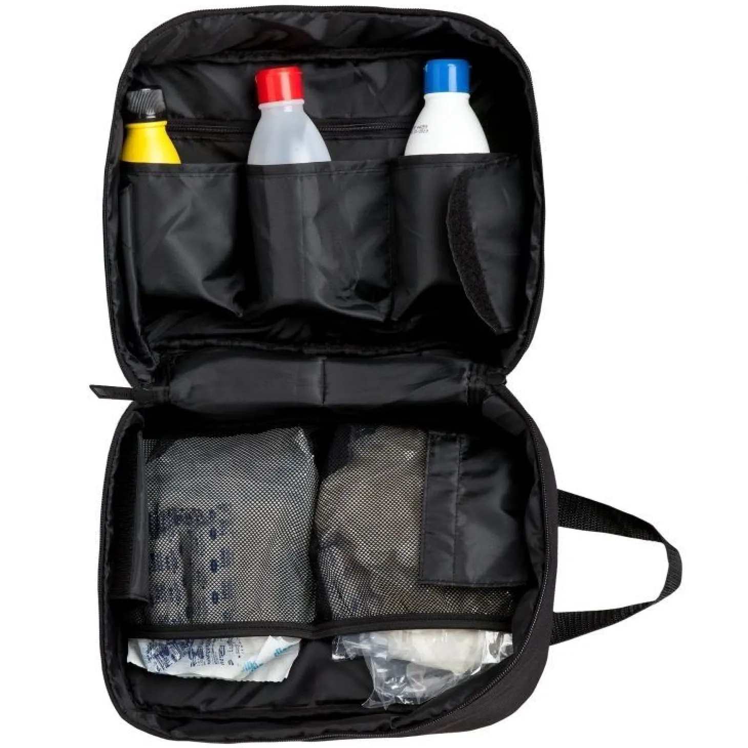 Diseño compacto con cierres de cremallera y asa de mano para un cómodo transporte. Botiquín de primeros auxilios perfecto para equipos deportivos.